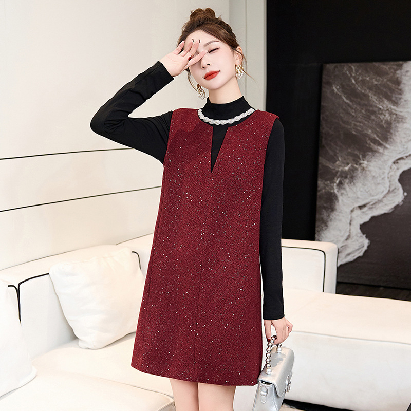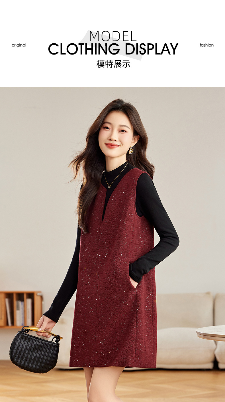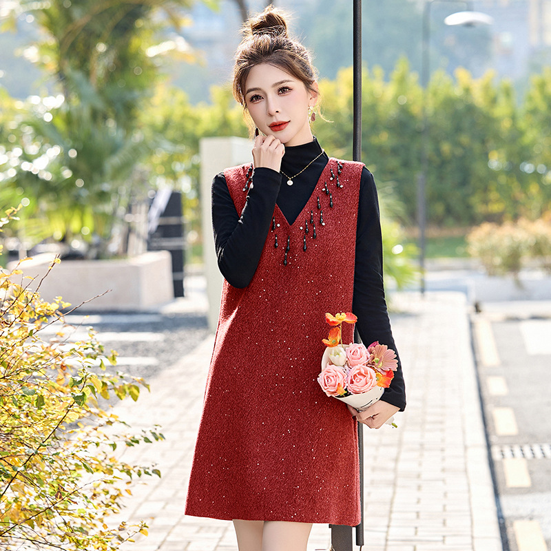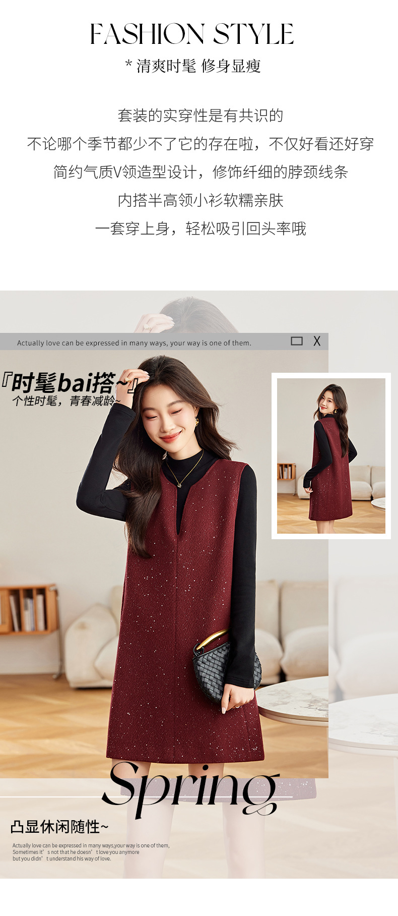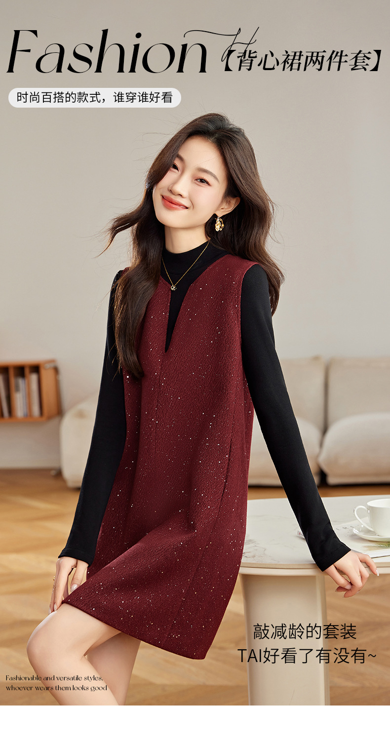 小香風ワンピース2025春の新型洋気減齢スパンコール底ベストスカートファッションスーツME5505
