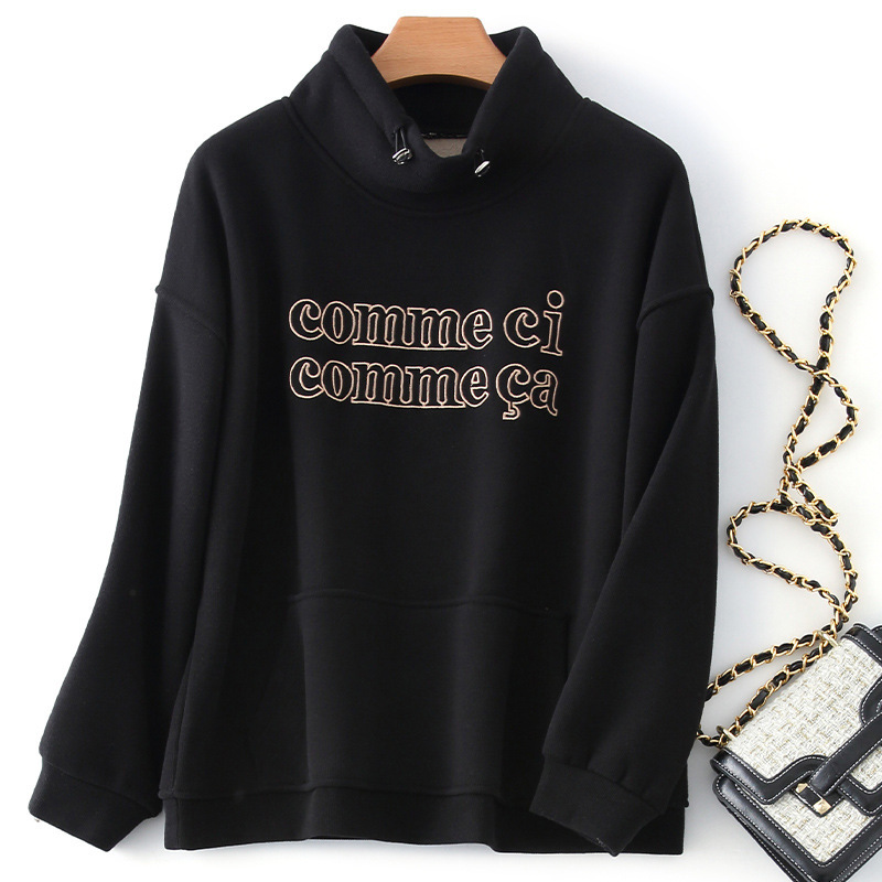 フリーススウェットシャツジャケット 2024 秋と冬のファッション気質ハイカラー刺繍暖かい厚みのあるスウェットシャツ女性のための 3984