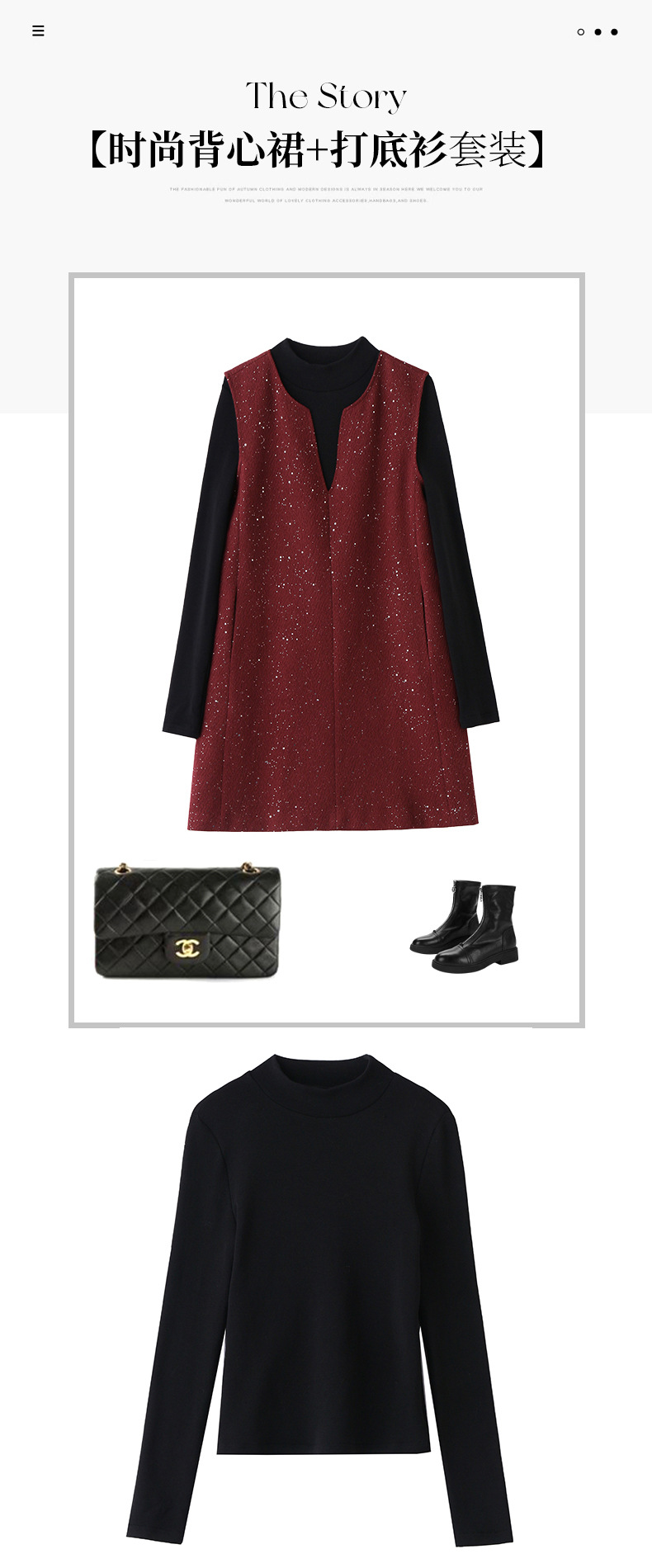 法式小香风圆领亮丝背心裙秋冬新款气质百搭名媛风打底直筒连衣裙