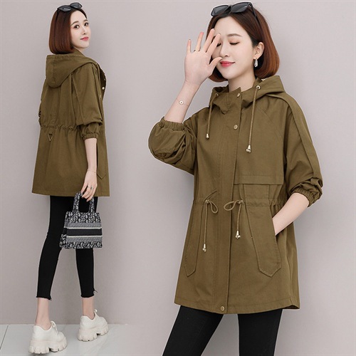 2024 新しいウインドブレーカー春と秋ミッドレングススリムトレンドシンプルな個性長袖フード付き HZ0144