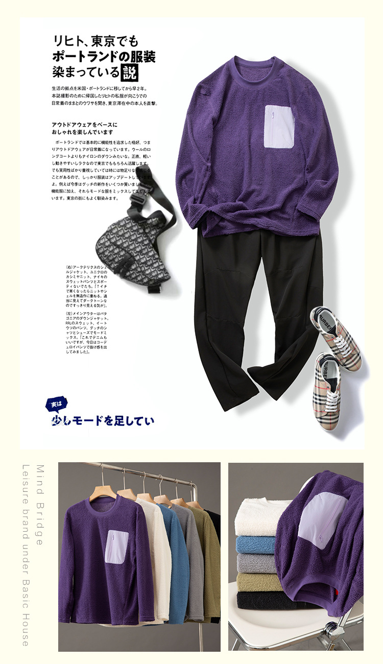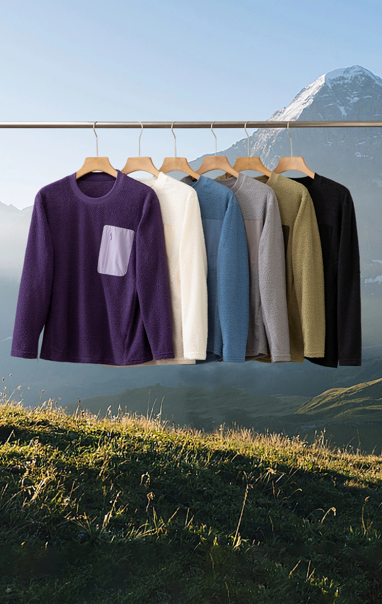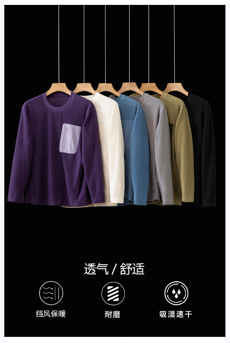 平替户外轻量化~男女情侣款秋冬轻薄摇粒绒套头圆领长袖T恤打底衫