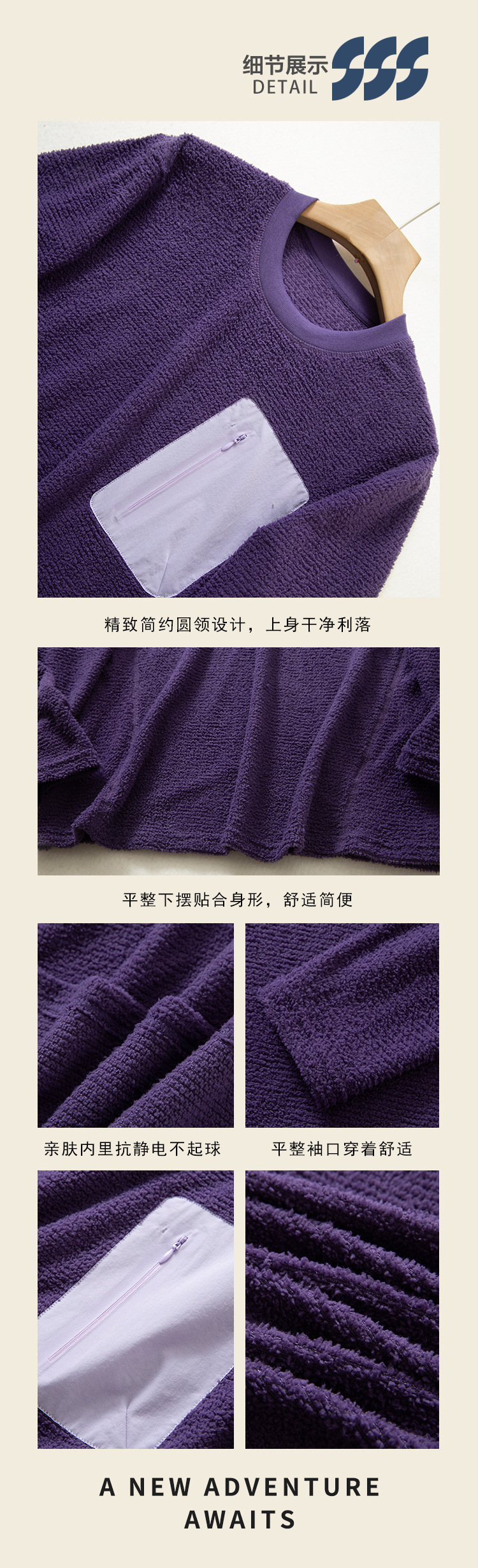 穿搭“神品”波浪纹高端秋冬季户外通勤情侣半拉链长袖卫衣抓绒衣