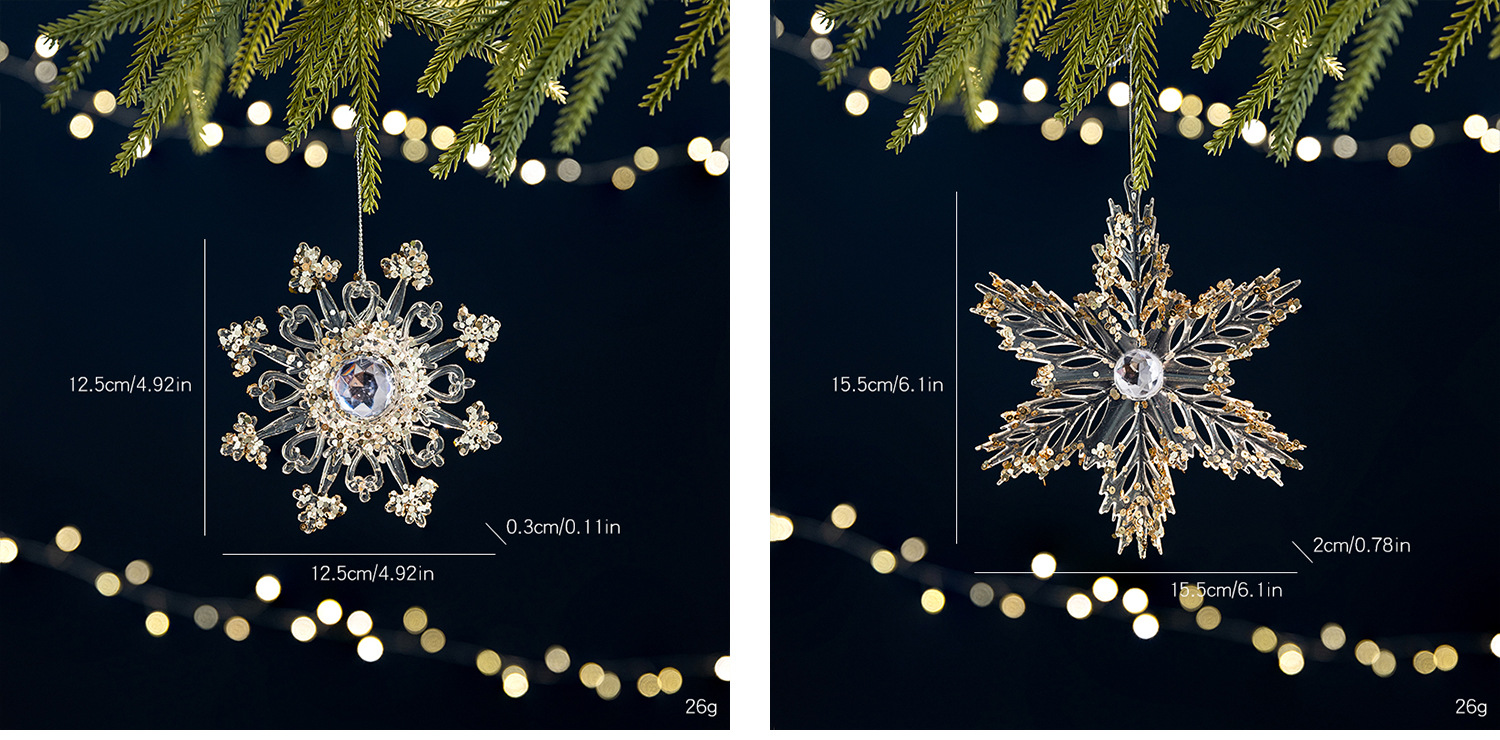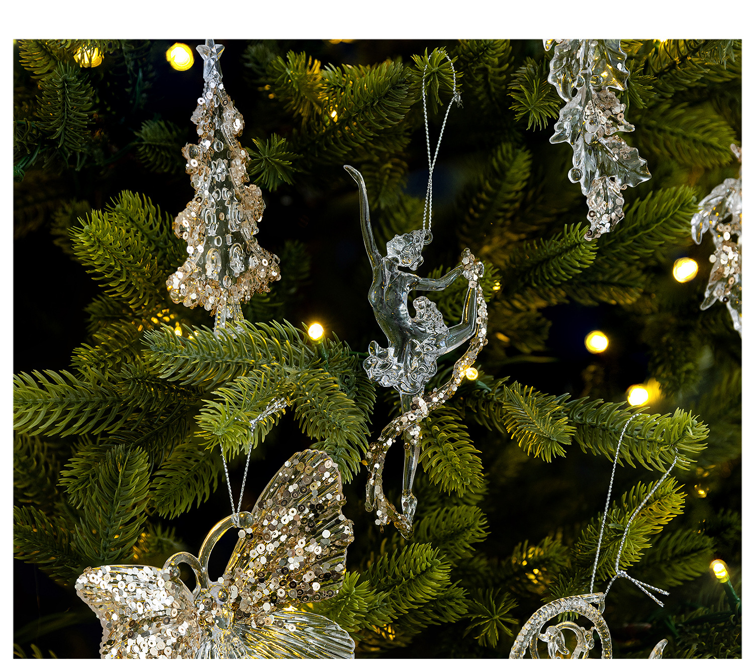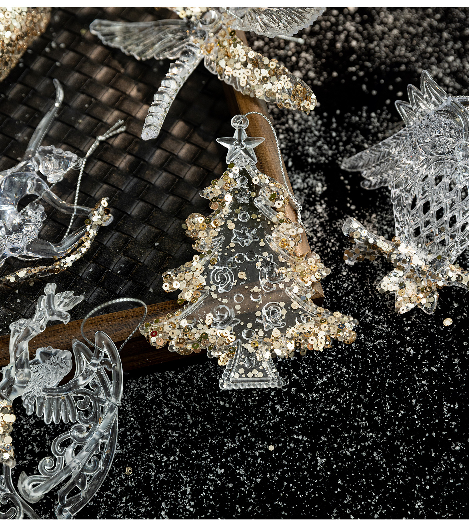 跨境圣诞装饰透明亚克力雪花挂件亮片天使水晶挂饰圣诞树氛围布置