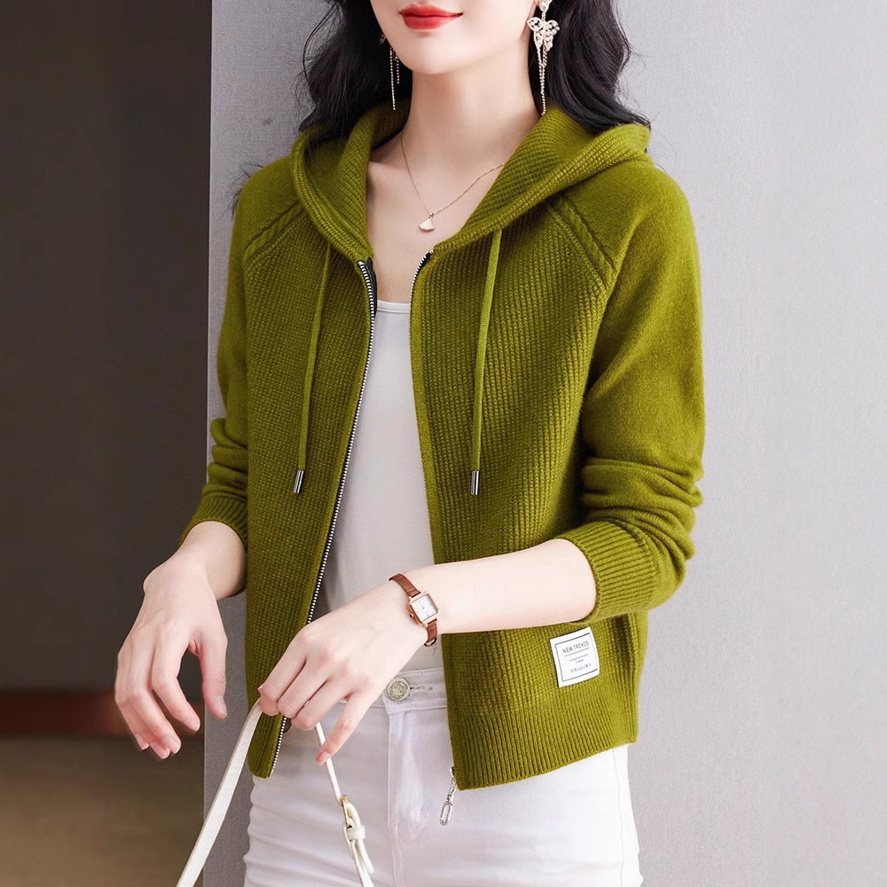 2025新型ニット女装春秋帽子付き上着のパーカーのファッション独特なセーターのカーディガンのお母さんのコート
