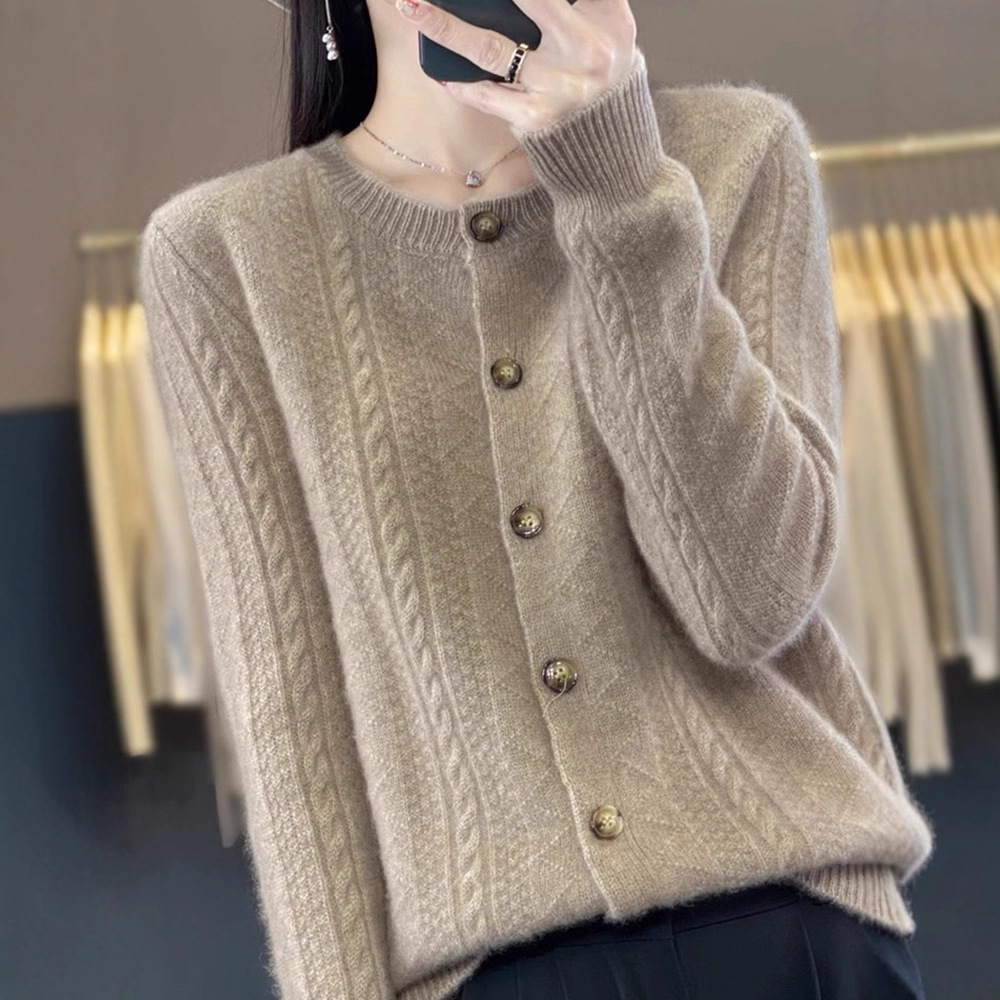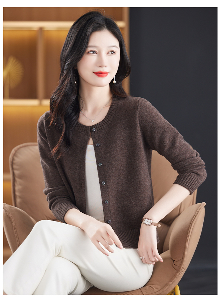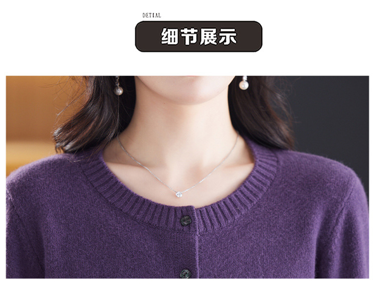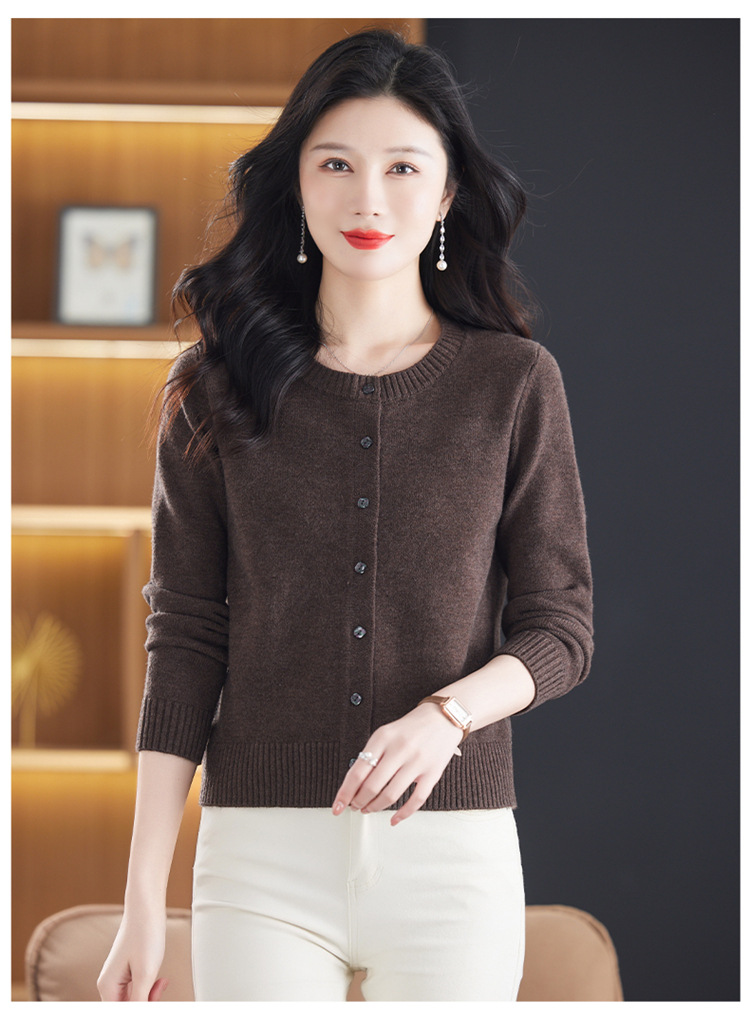 气质休闲2025秋冬新款针织开衫女纯色圆领毛衣女宽松百搭毛衣外套