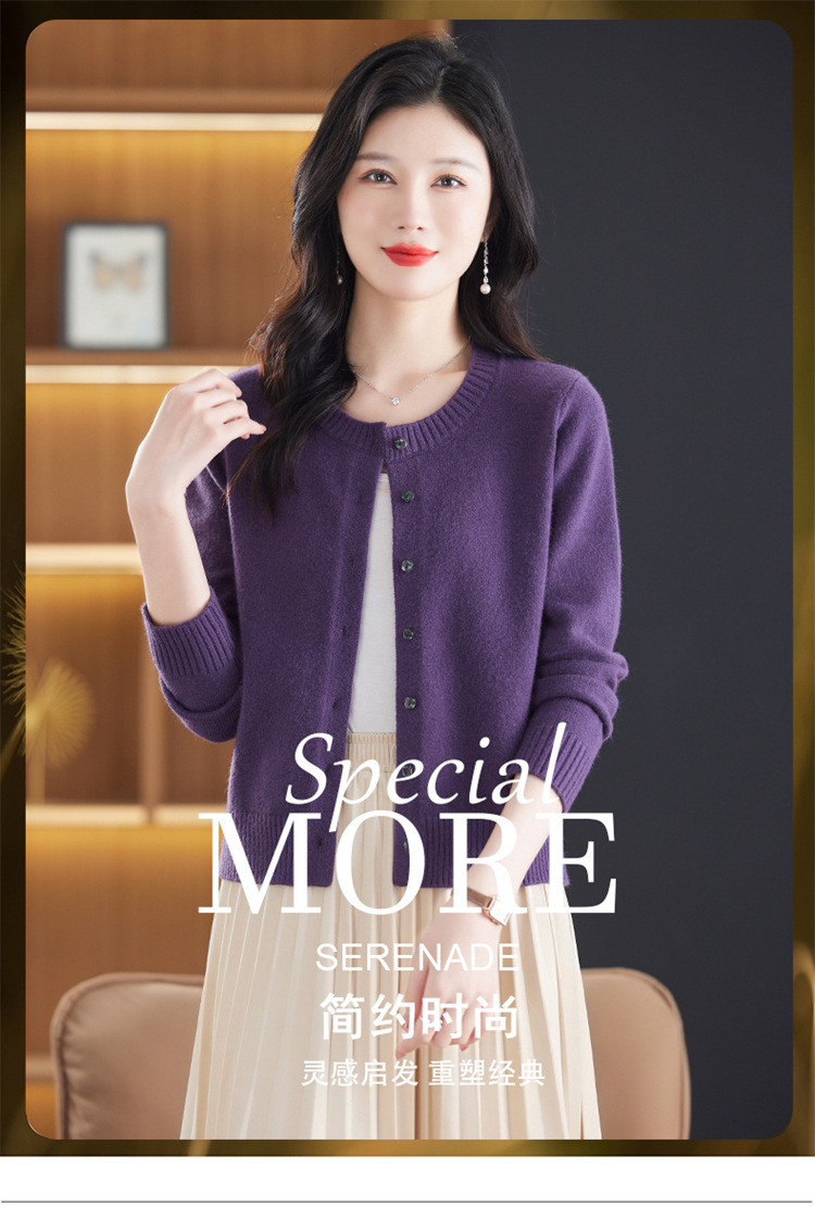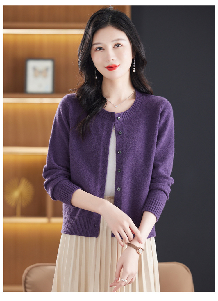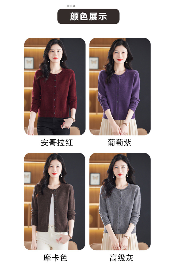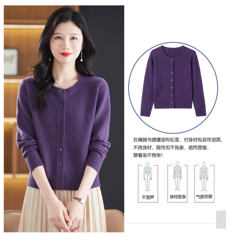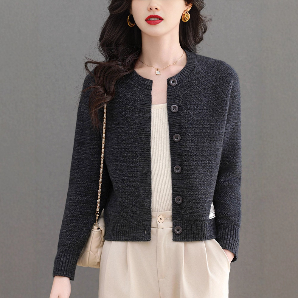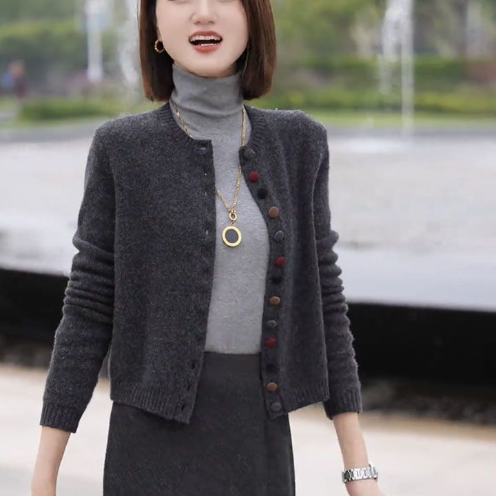 春秋新款2025针织开衫女短款宽松洋气圆领上衣毛衣外套高端彩扣