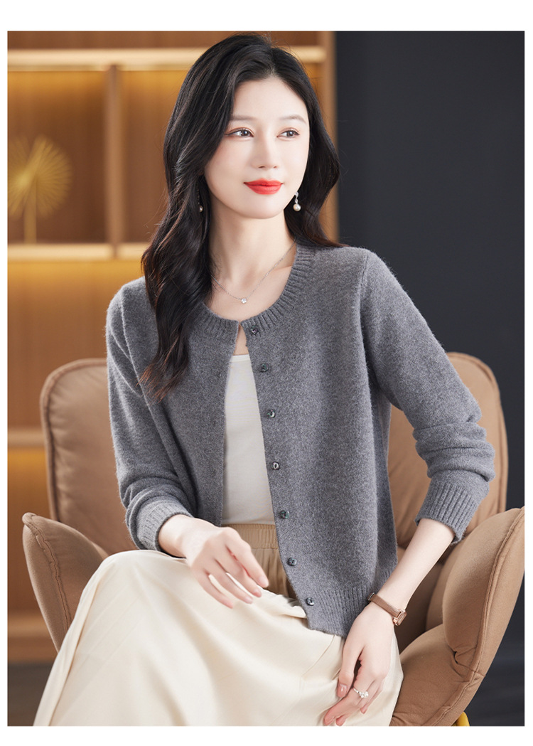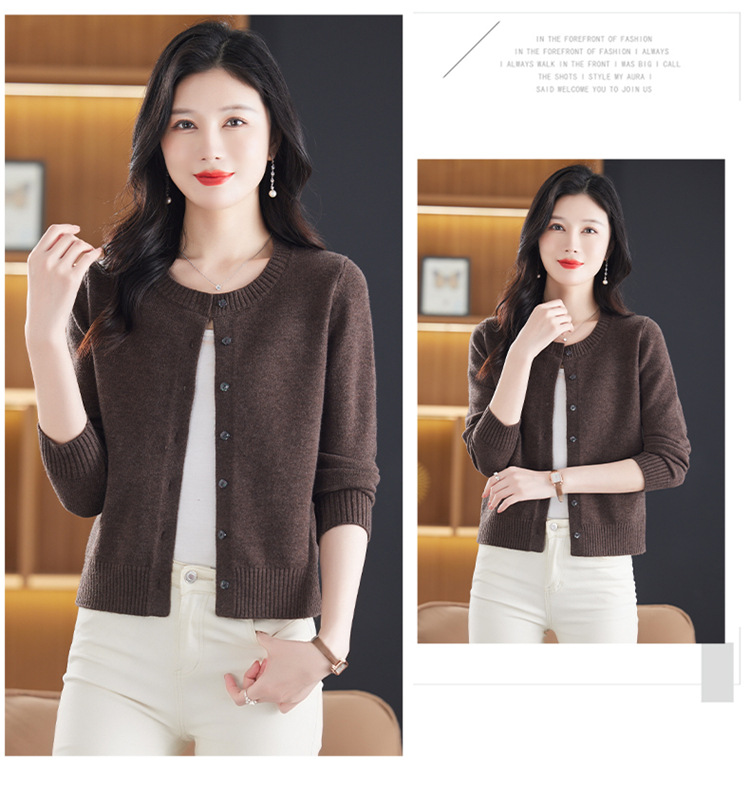 2025春秋新款宽松圆领薄款针织衫女洋气外套外搭针织开衫内搭毛衣