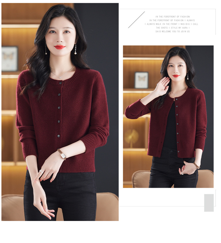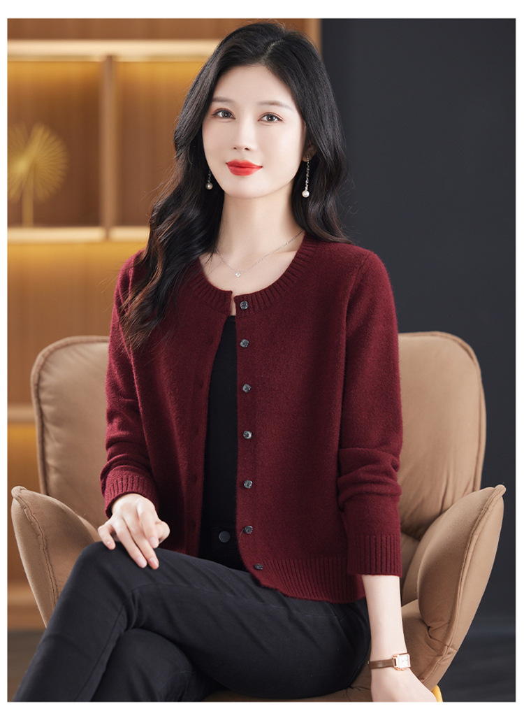 優しい雰囲気感のある丸首セーターのカーディガン女性秋冬本命新年レトロな赤い柔らかいモチモチのニットコート