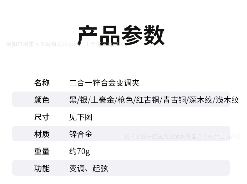 颜色 二合一锌合金变调夹【黑色】彩盒装,二合一锌合金变调夹【银色】彩盒装,二合一锌合金变调夹【枪色】彩盒装,二合一锌合金变调夹【红古铜】彩盒装,二合一锌合金变调夹【土豪金】彩盒装,二合一锌合金变调夹【青古铜】彩盒装,二合一锌合金变调夹【浅木纹】彩盒装,二合一锌合金变调夹【深木纹】彩盒装,二合一锌合金变调夹【鳄鱼纹黑色】彩盒装