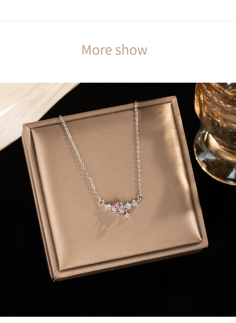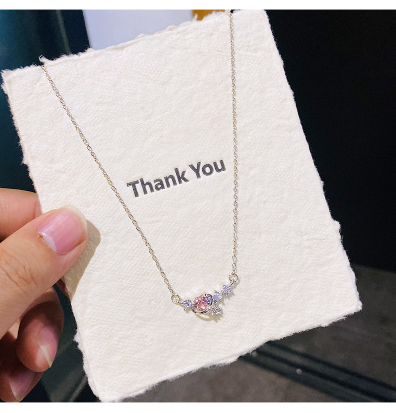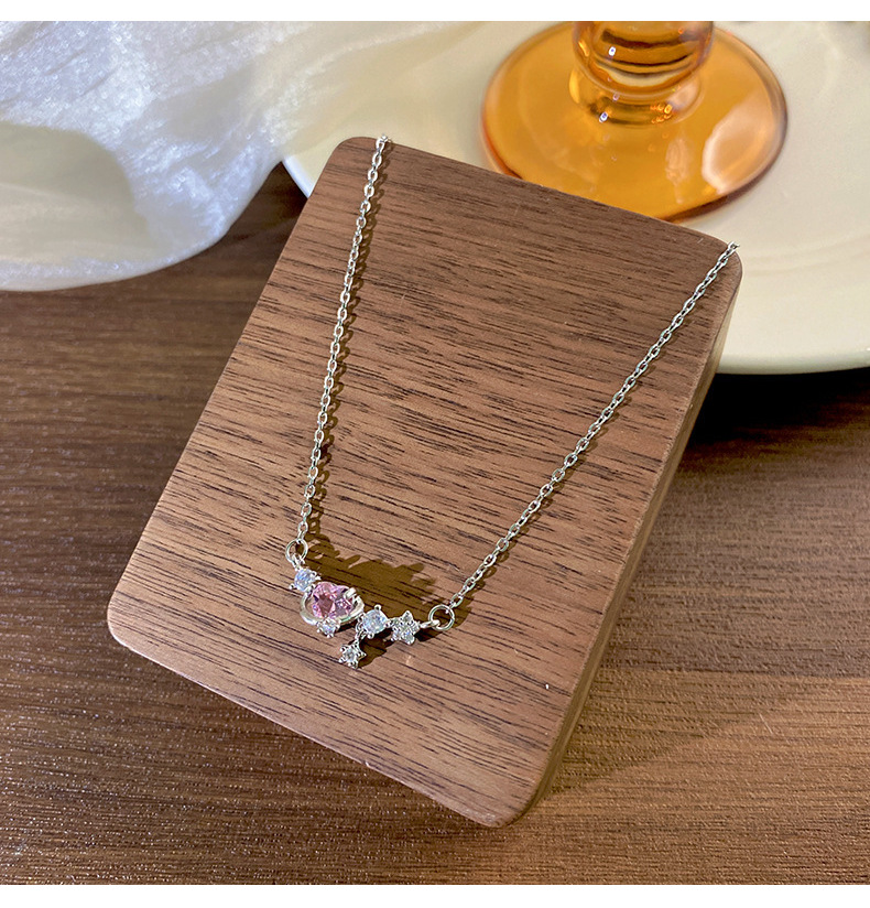 粉色锆石小方钻钛钢项链小清新甜美少女感锁骨链网红气质轻奢饰品