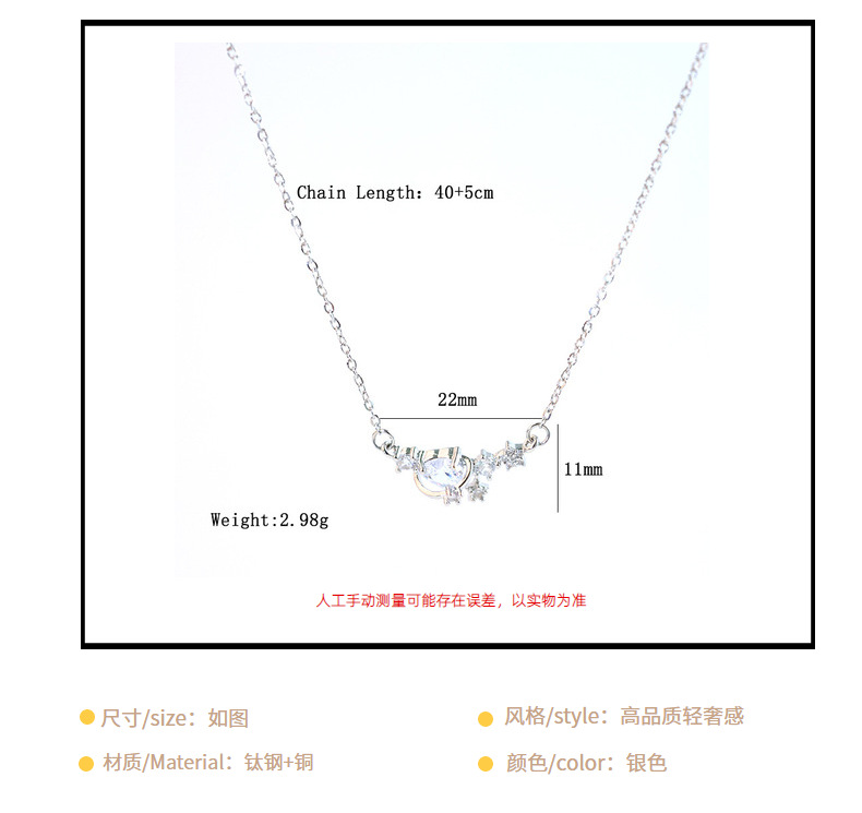 银色炫彩月亮超闪钛钢项链女反光彩色百搭锁骨链气质轻奢饰品批发