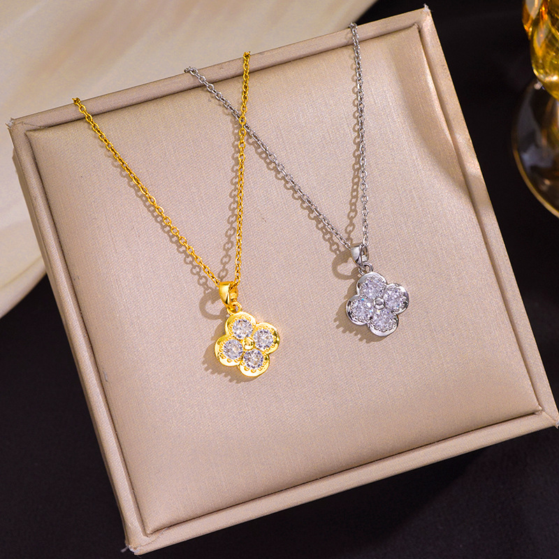 璀璨四叶草镶钻钛钢项链女精致优雅小众设计感锁骨链镶嵌锆石饰品