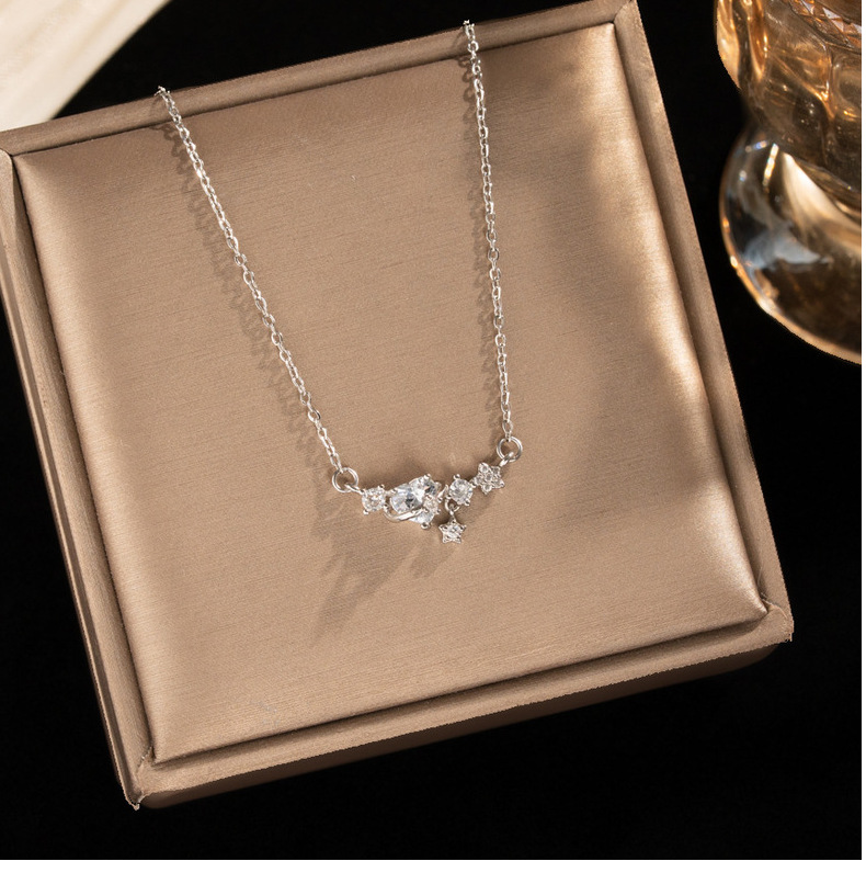 日韓シンプル流行ins風チタン鋼ネックレス女性小衆精致ネット赤ジルコン鎖高級感アクセサリー