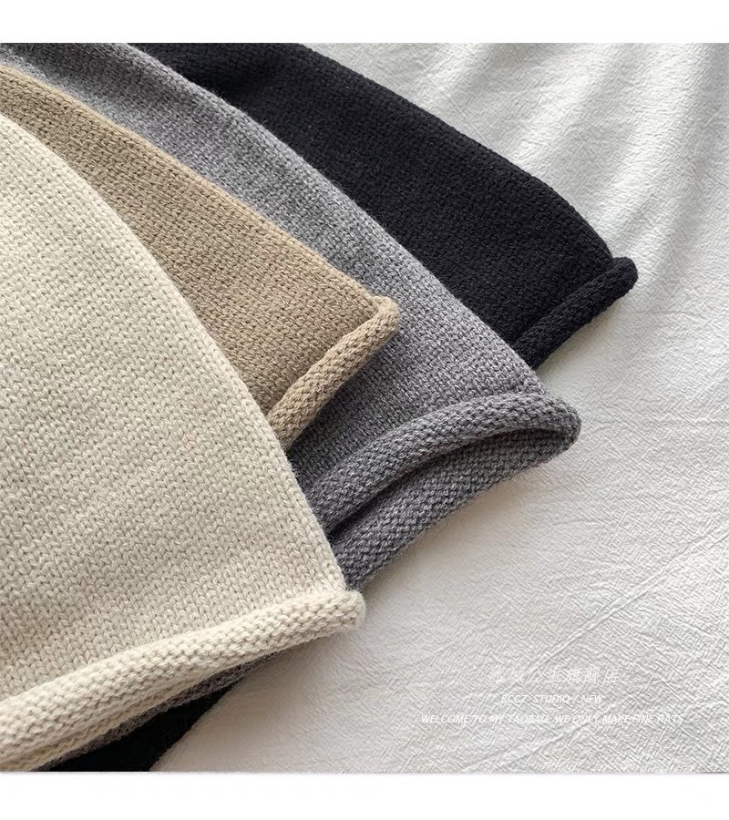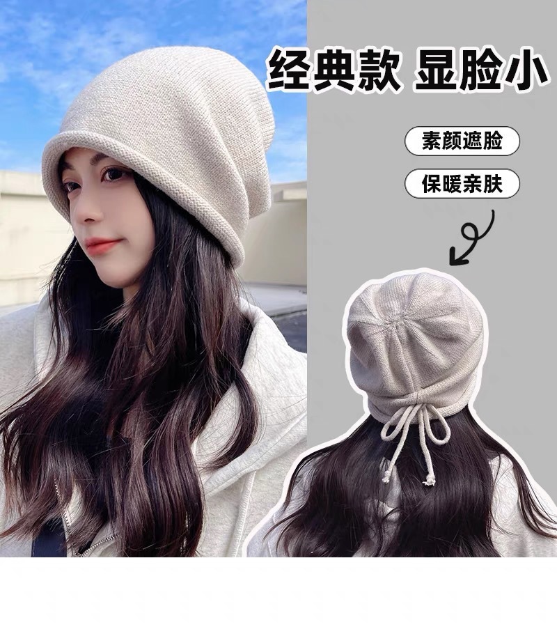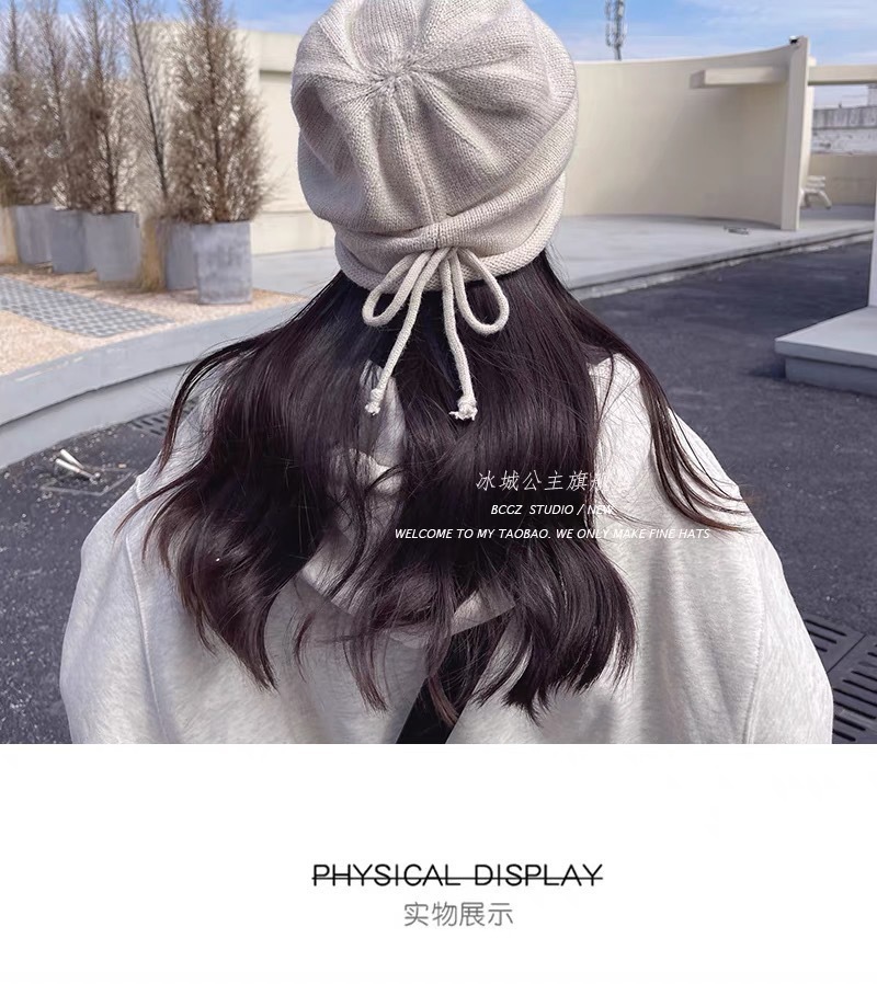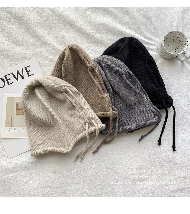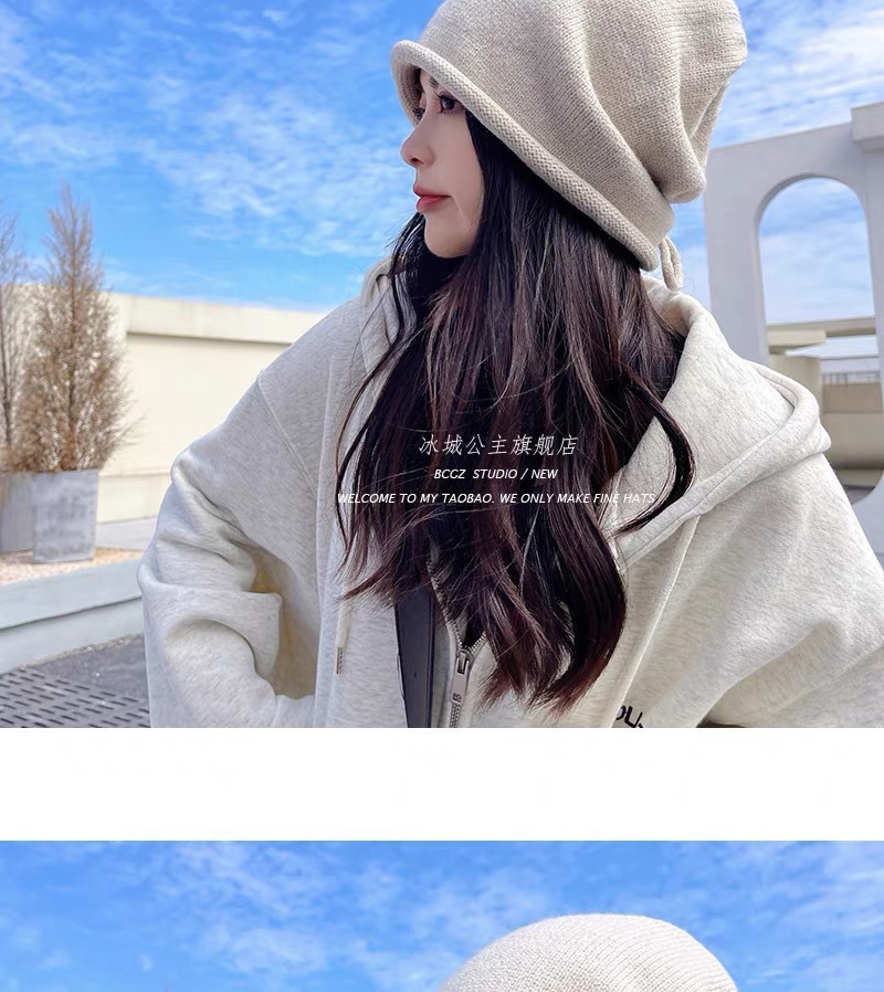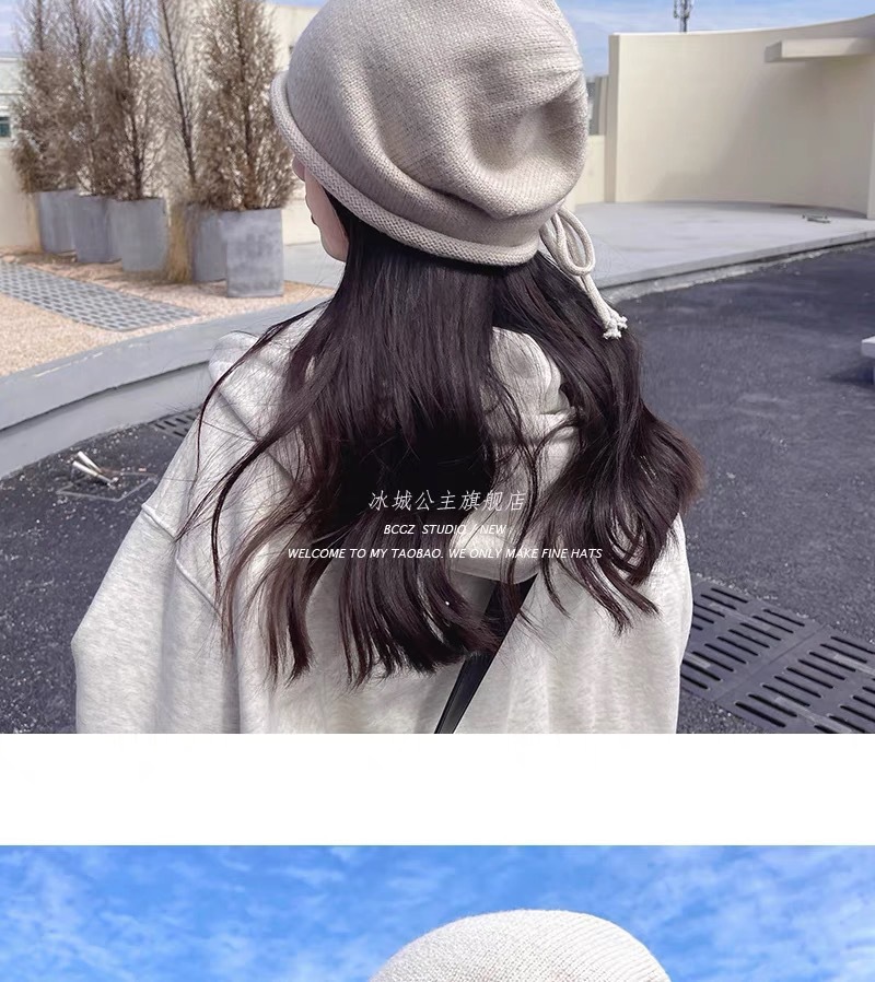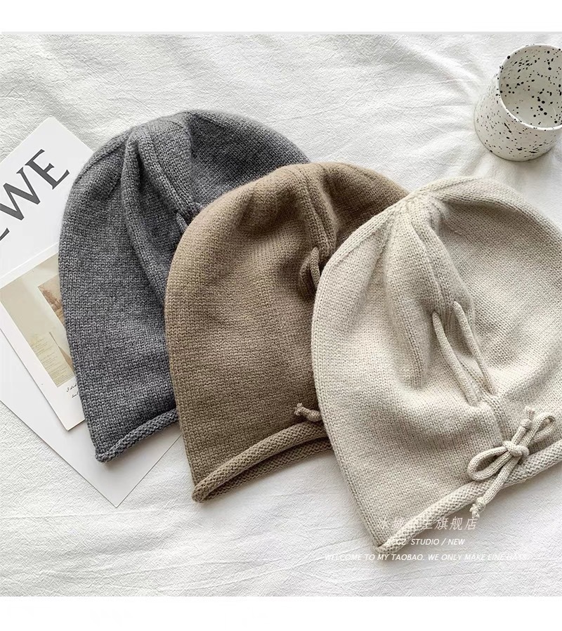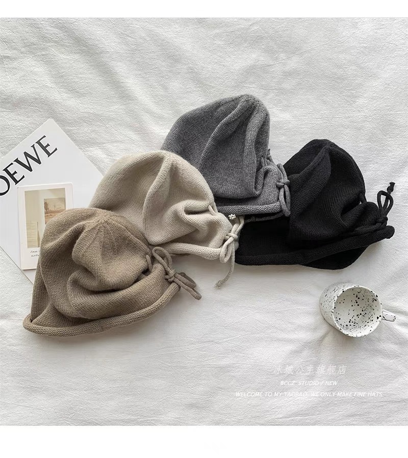 秋冬高级感显脸小包头针织保暖时尚通勤卷边月子帽 抽绳堆堆帽