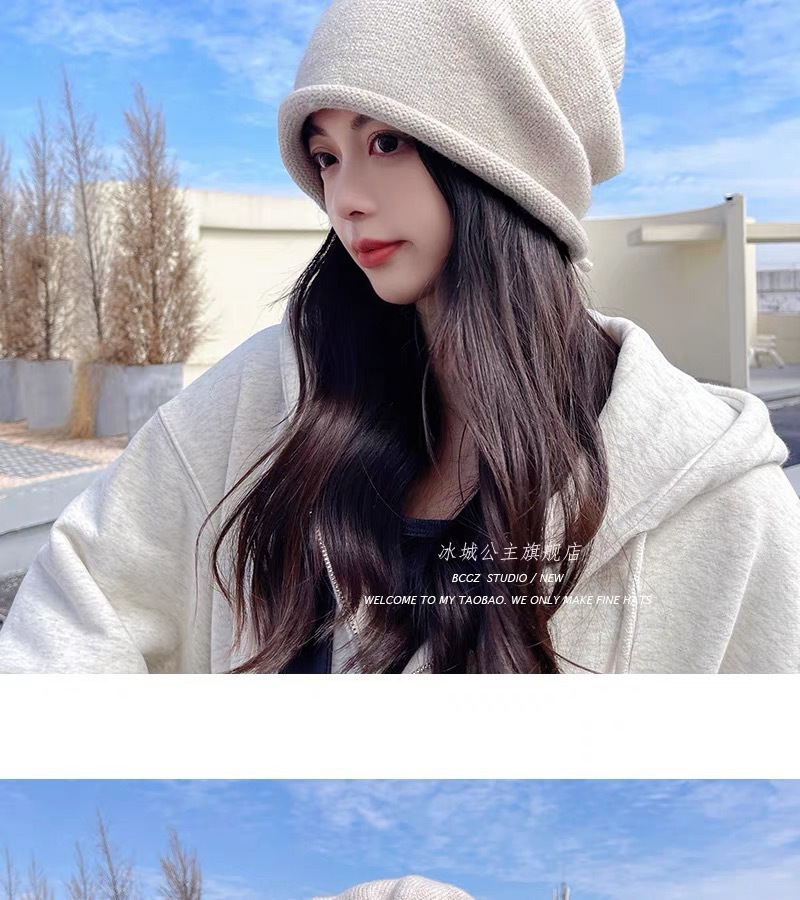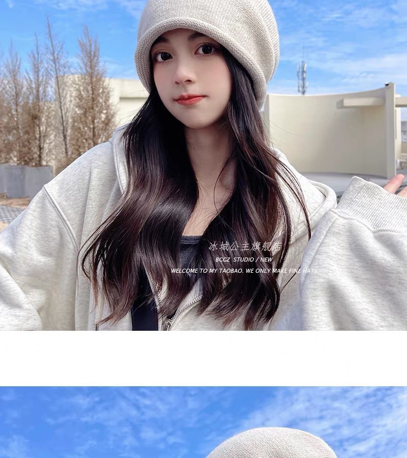 頭囲が大きい女性用帽子、小顔、秋冬韓国版、万能おしゃれウール帽子、ゆったり暖かいニット帽