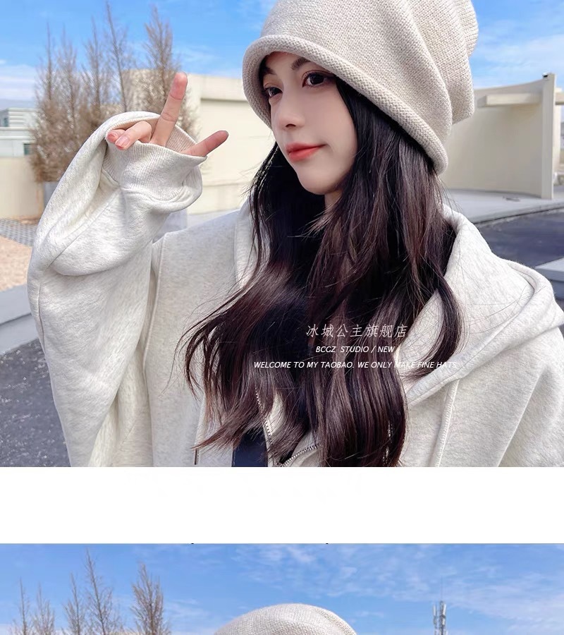 冬天女百搭针织帽子韩版女堆堆帽包头帽双面戴秋冬护耳保暖毛线帽