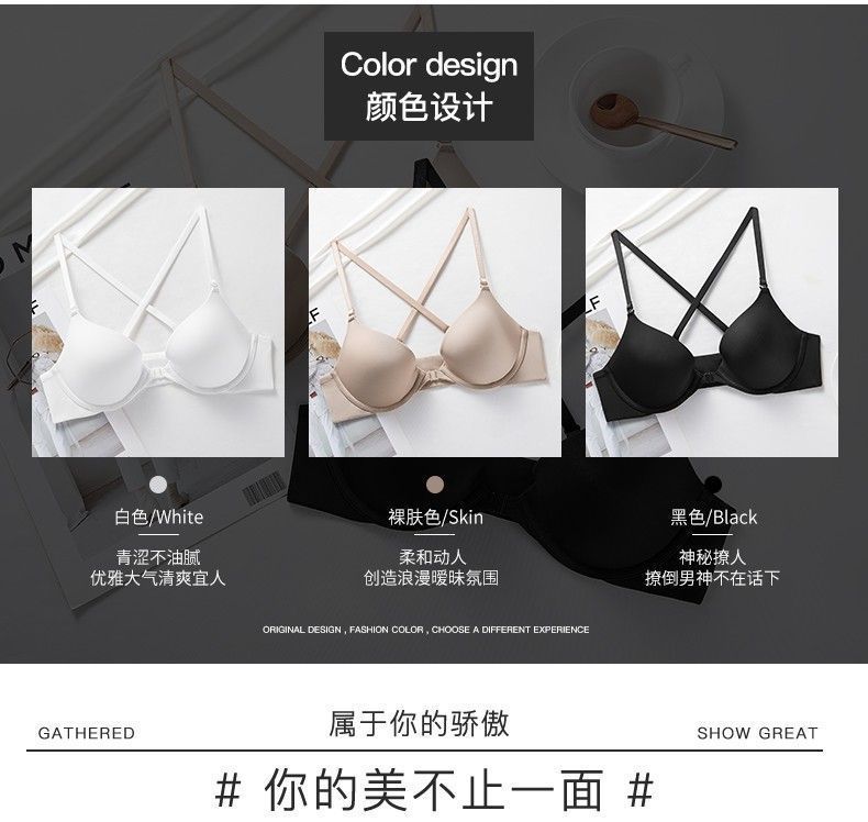 2cmの小さな地雷の小さな胸が大きく見えるプッシュアップレタリングブラジャー、ワイヤーなし、丸くてヌード感のある肌に優しいワンピースブラジャー
