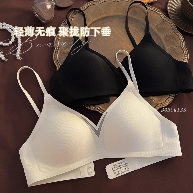 厂家直销跨境爆款裸感无痕内衣女小胸聚拢法式三角杯文胸夏季薄款