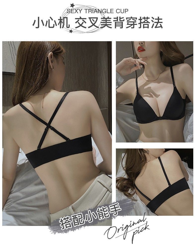 非磁気Kbraミルクサテンフランス深vネック下着女性の細い肩ベルト無痕三角カップ小胸無鋼輪ブラジャー