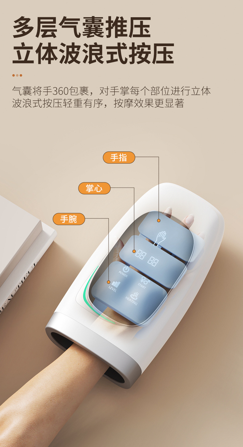 跨境手持式电动手部按摩仪震动加热便携家用多功能腱鞘炎按摩器