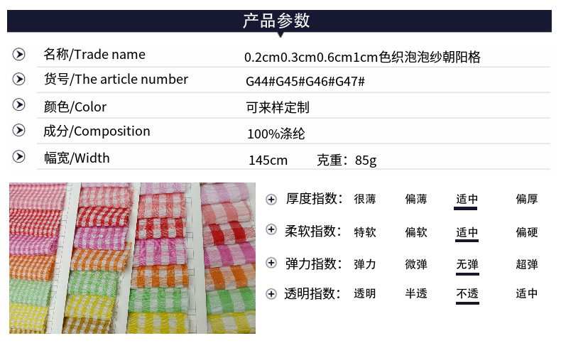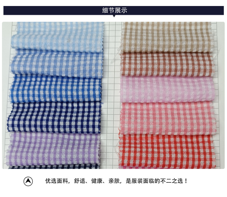 2mm3mm6mm10mm不同间距全涤色织泡泡纱朝阳格子面料裙装布料布匹