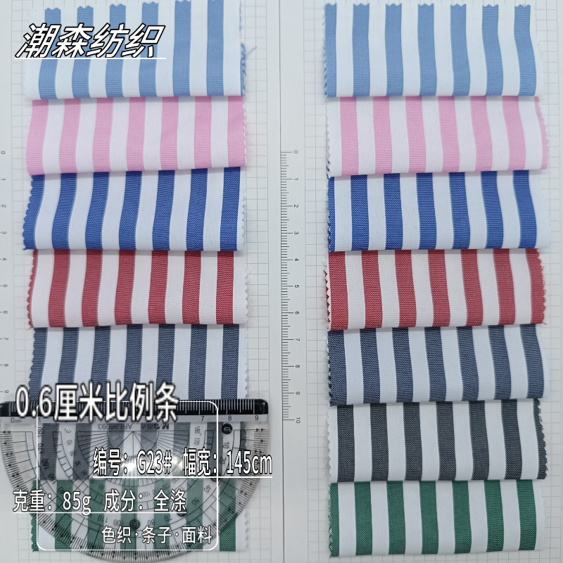 0.5cm0.6cmの比例ストライプ柄の色織り生地、ポリエステル100%、0.5cm、0.6cm本糸、スカートやシャツ用の生地
