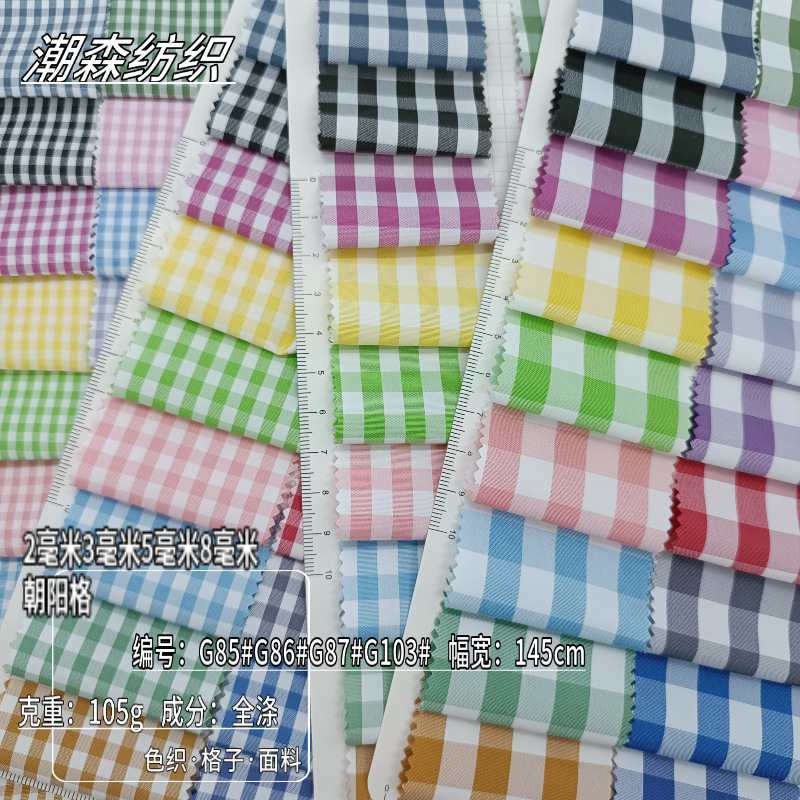 2MM3MM5MM8MM色织涤纶高密朝阳格子面料衬衫箱包鞋帽全涤格子布料