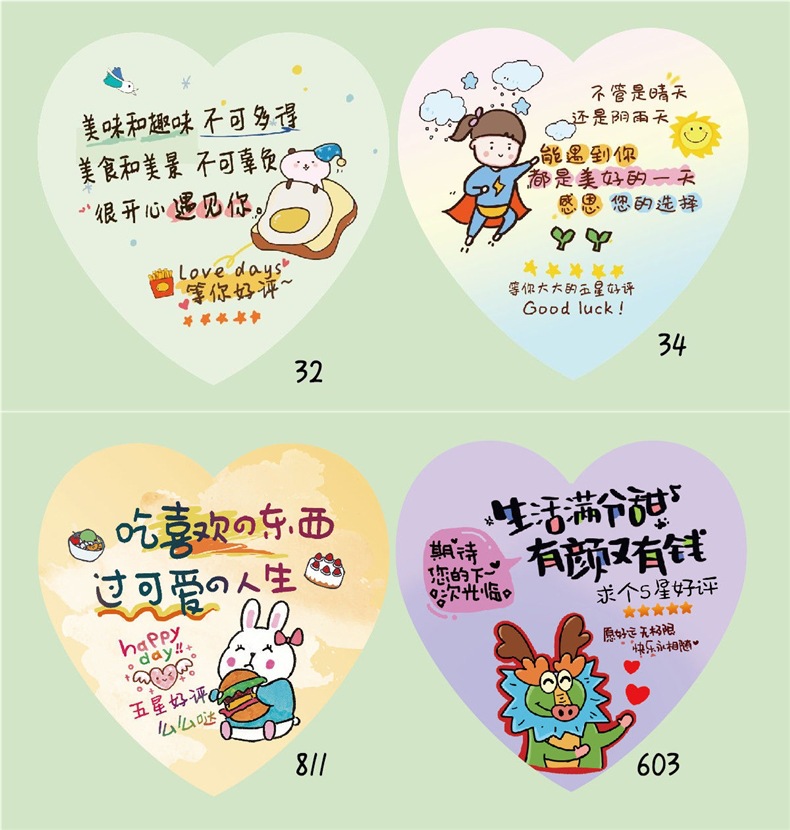 暖心新年外卖餐饮便利贴便签纸好评价卡可爱搞笑奶茶带字提示贴纸