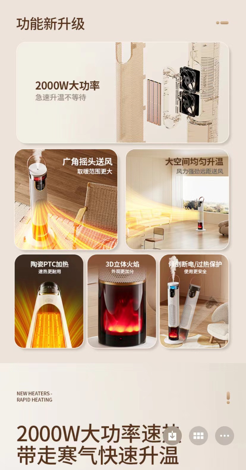 扬子暖风机取暖器暖风机浴室电暖气仿真火焰速热立式电热扇跨境省