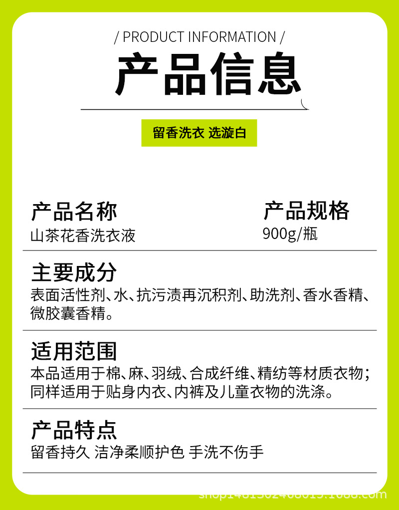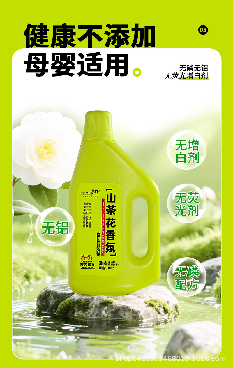 厂家批发漩白900克山茶花香氛洗衣液 强力去污持久留香洗护合一