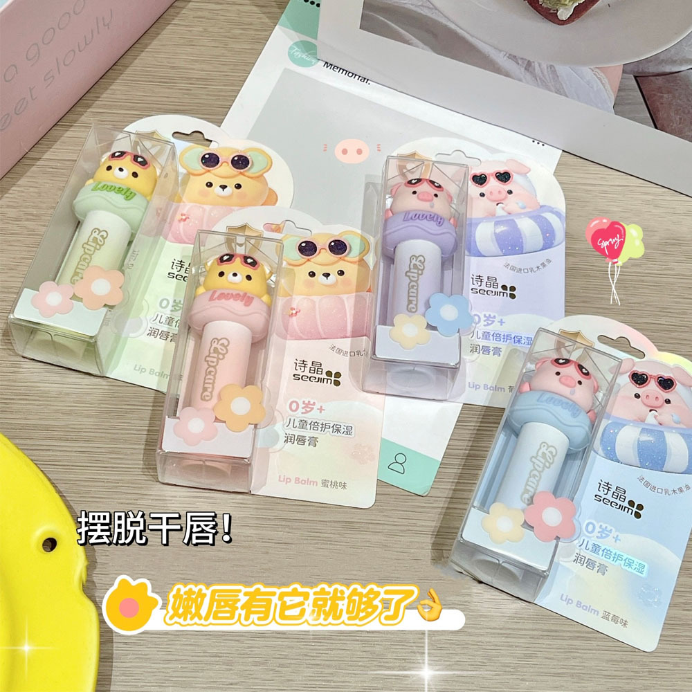诗晶卡通保湿滋润唇膏儿童宝宝男女学生修护唇膏无色去死皮不油腻