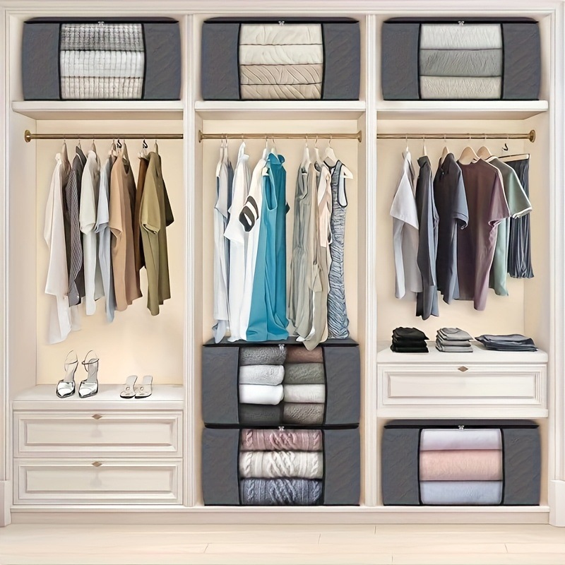 大容量衣類収納バッグ 折りたたみ式 寝室用布団収納ボックス ブラックジッパー 不織布 防塵布団袋