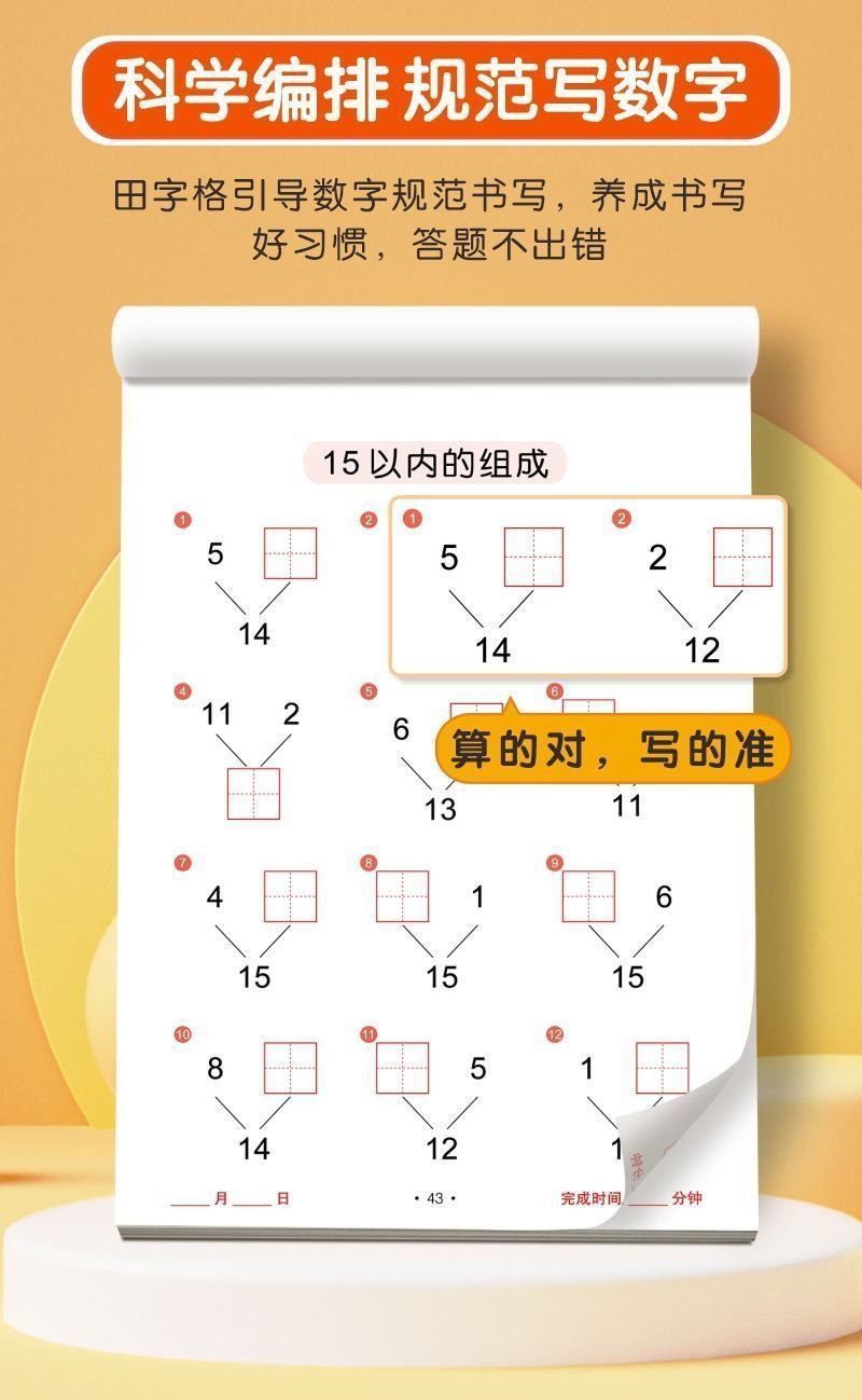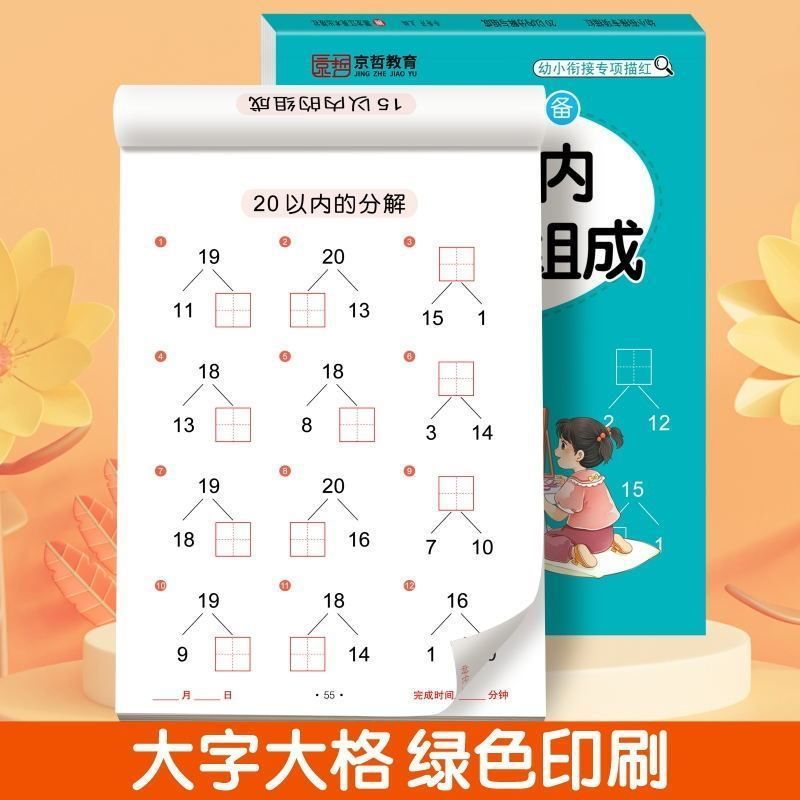幼儿园10/20以内加减法练习本 幼小衔接大班口算卡一年级分解计算
