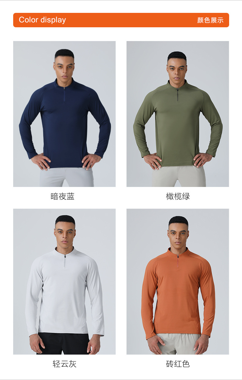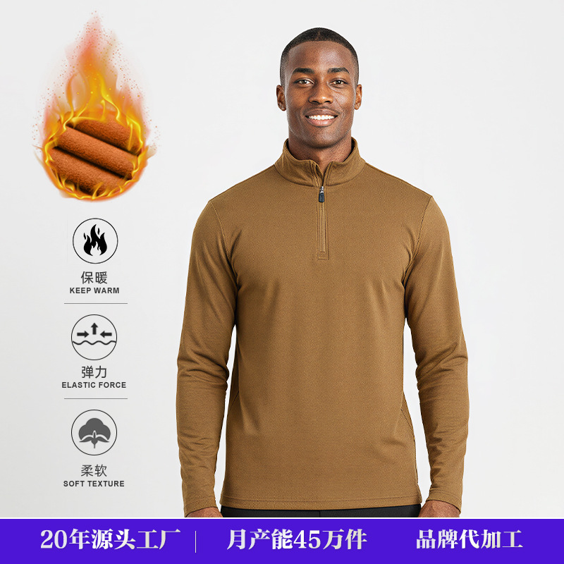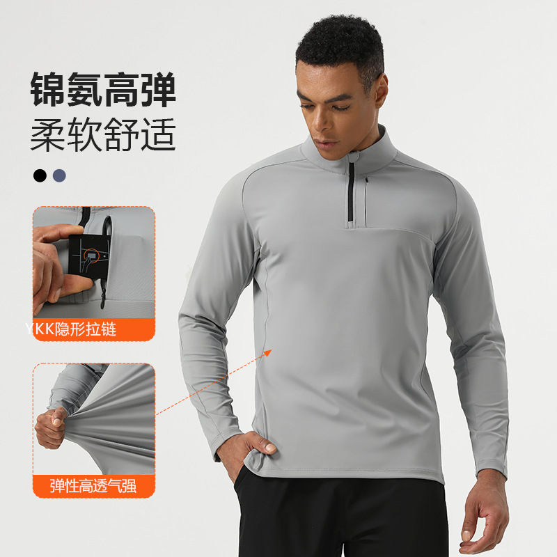 秋冬长袖上衣T恤健身跑步骑行黑色抓绒保暖半拉链立领运动t恤