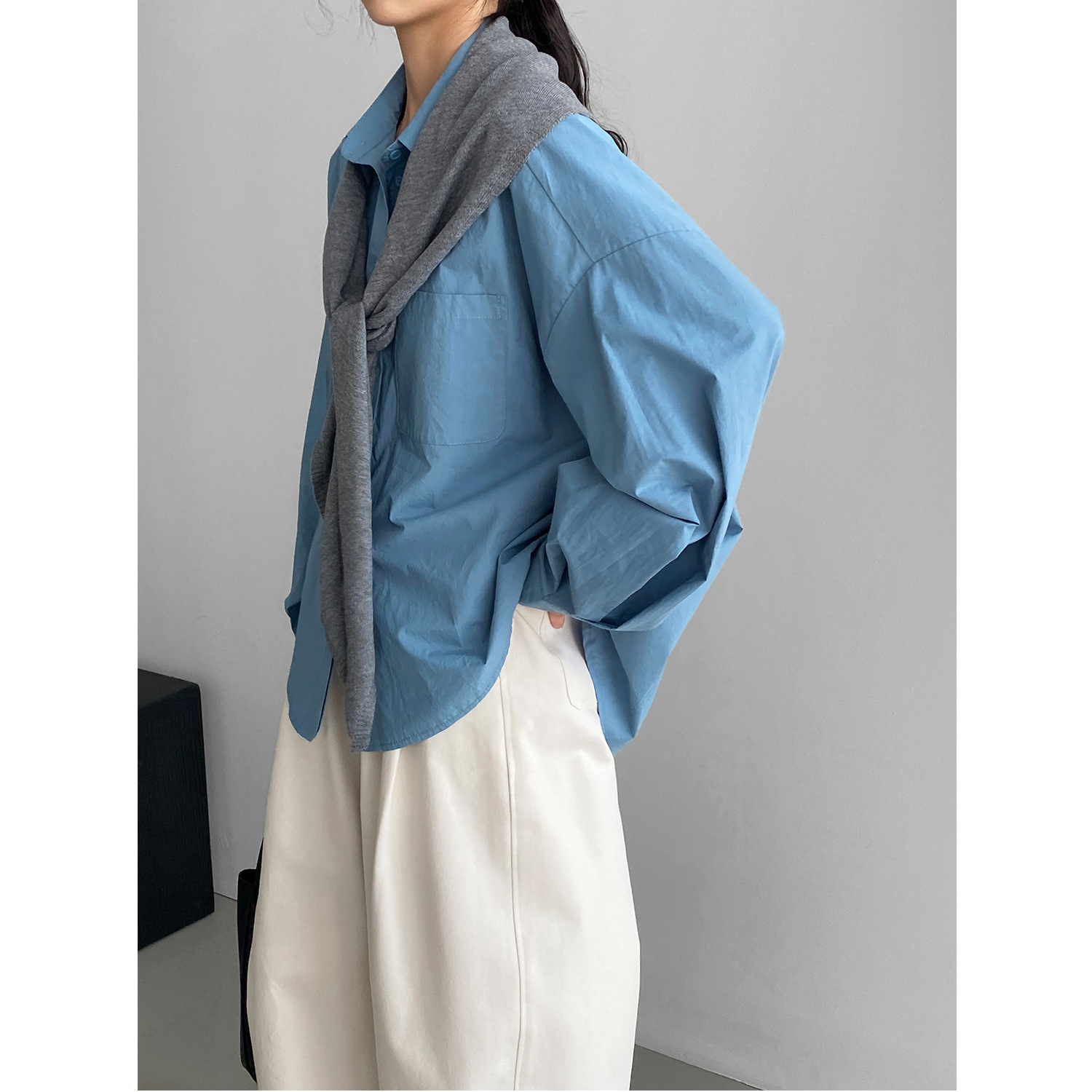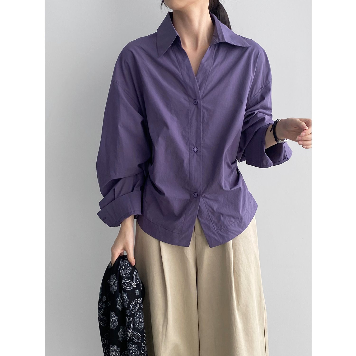 那末 艺术生 设计款宽松灯笼袖衬衫女韩系纯色慵懒风气质衬衣2633