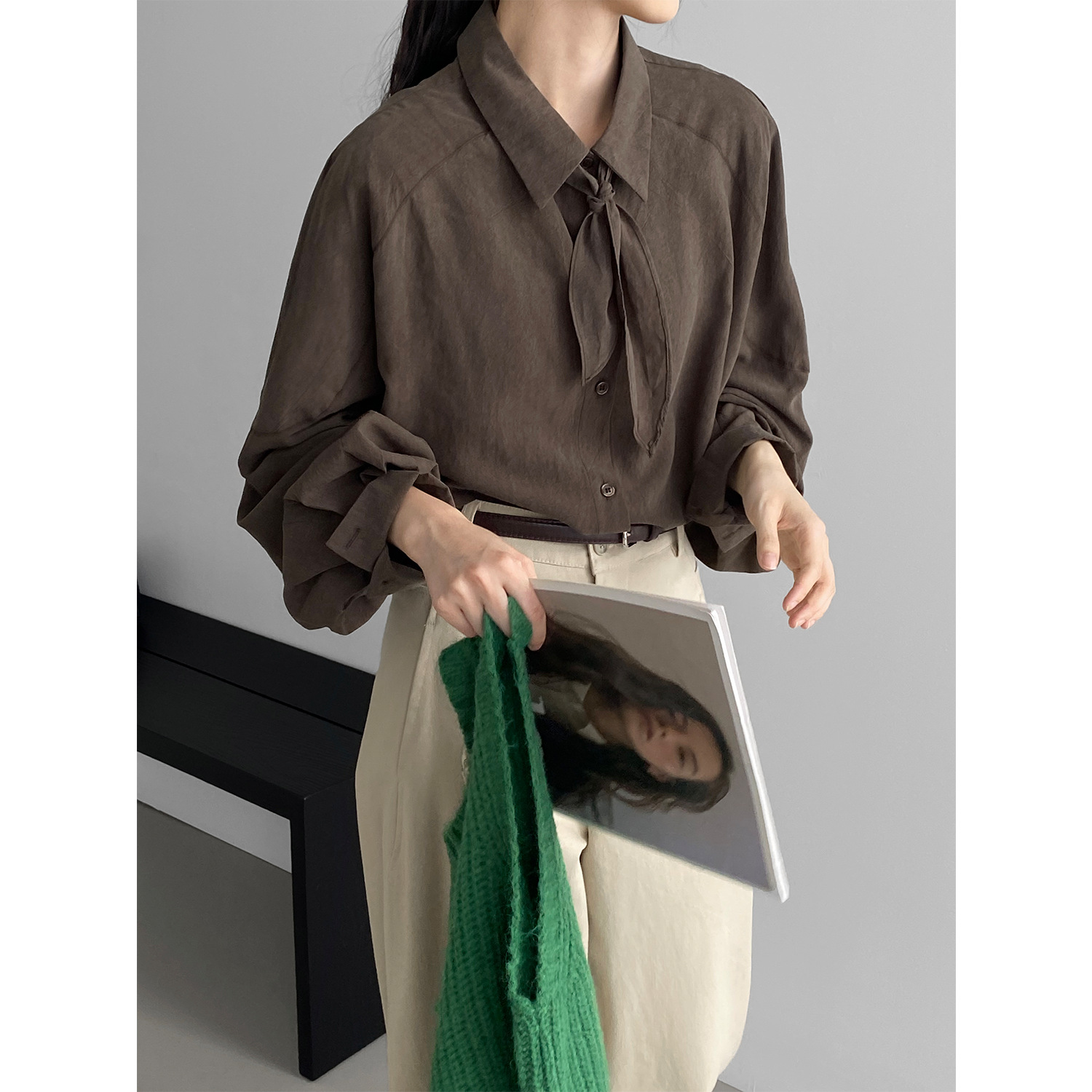 那末 艺术生衬衫 韩系气质100莱赛尔宽松衬衣女配领结上衣6119