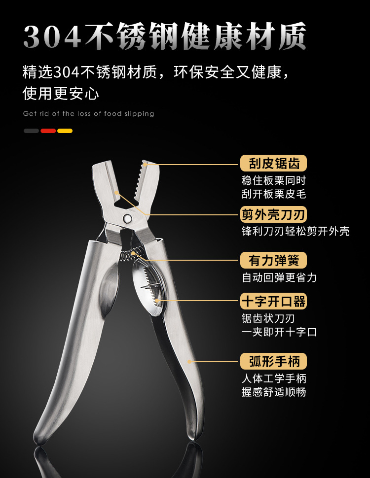 304不锈钢板栗开口器十字剥壳器剥栗神器家用夹板栗剥壳器坚果夹