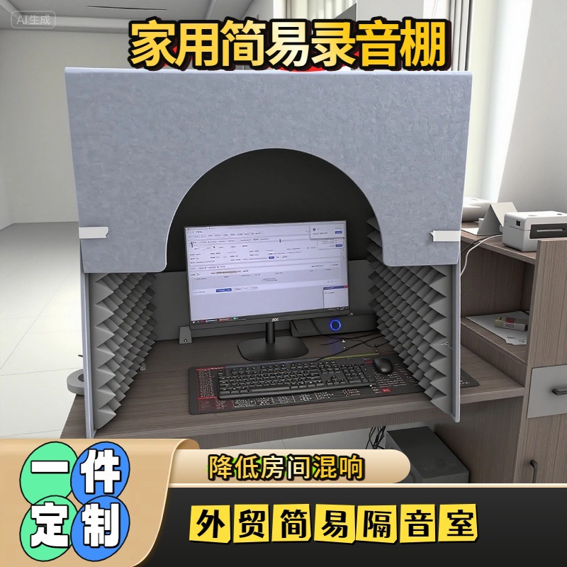 跨境定制简易桌面录音棚喜马拉雅有声主播除房降混底噪可拆卸折叠