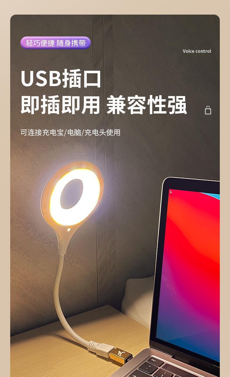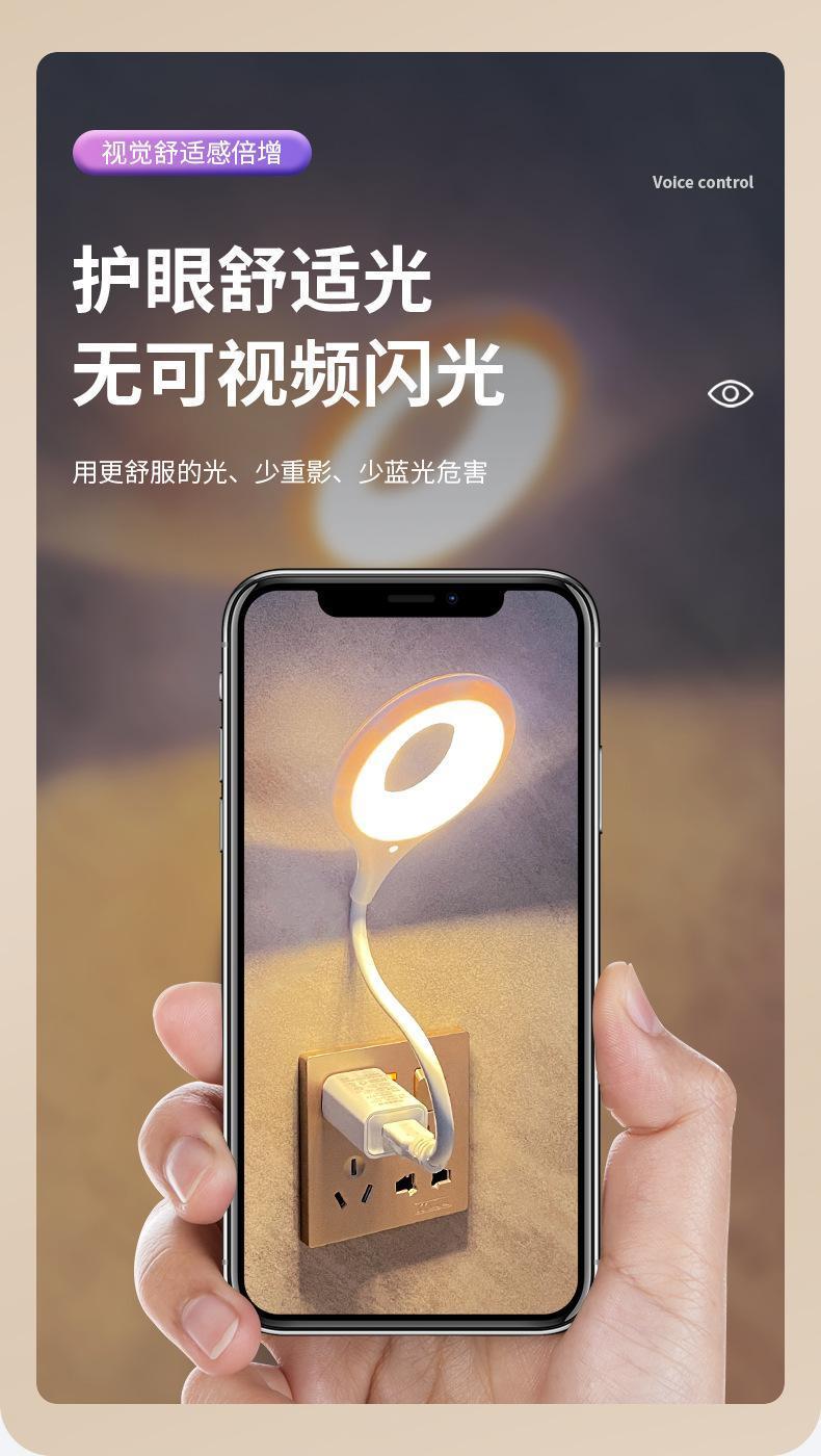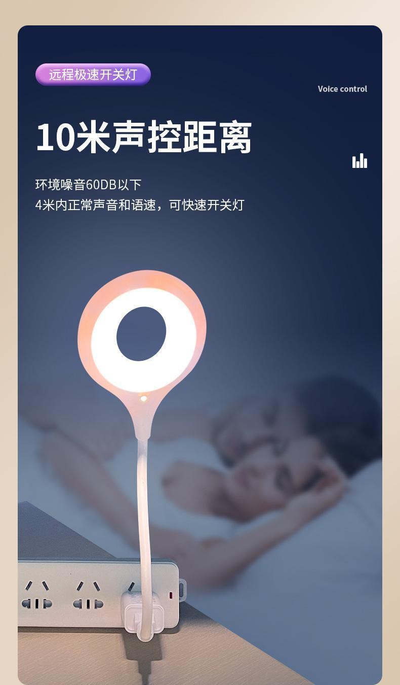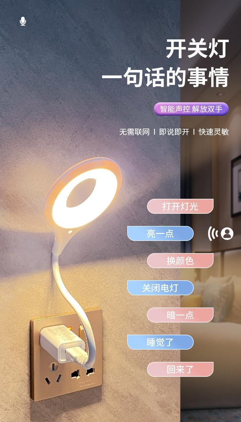 声控小夜灯床头灯宿舍人工语音控制小夜灯智能插电台灯usb小夜灯