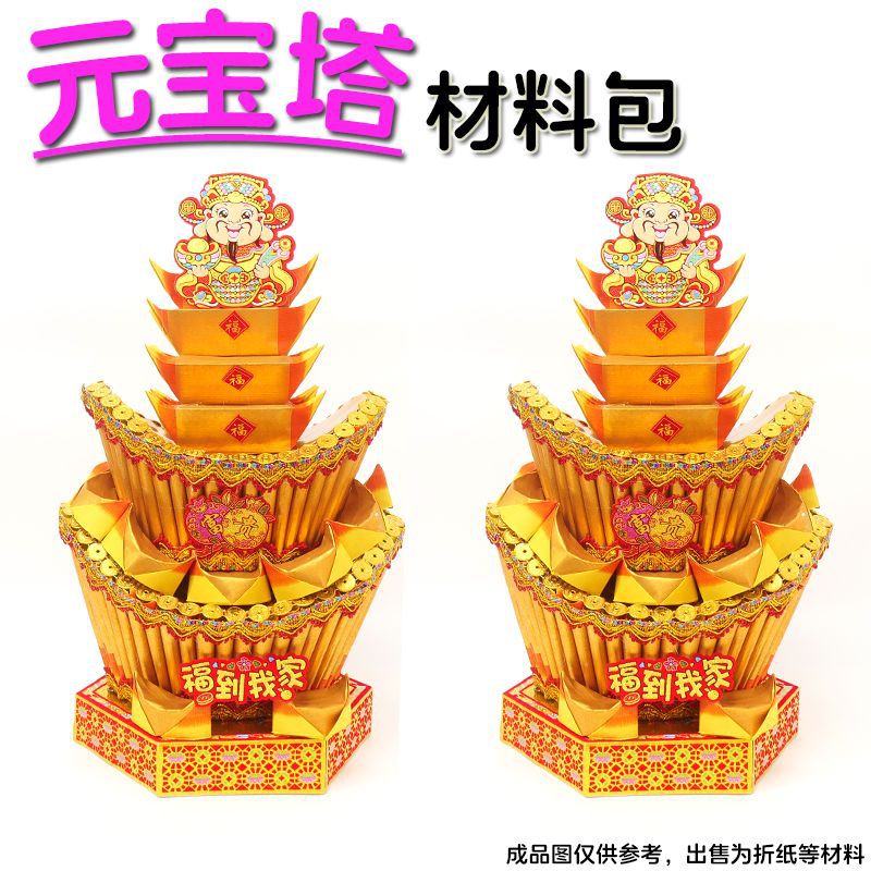 2025潮汕中秋节赏月元宝塔材料包 手工折纸塔财神塔招财进宝折塔
