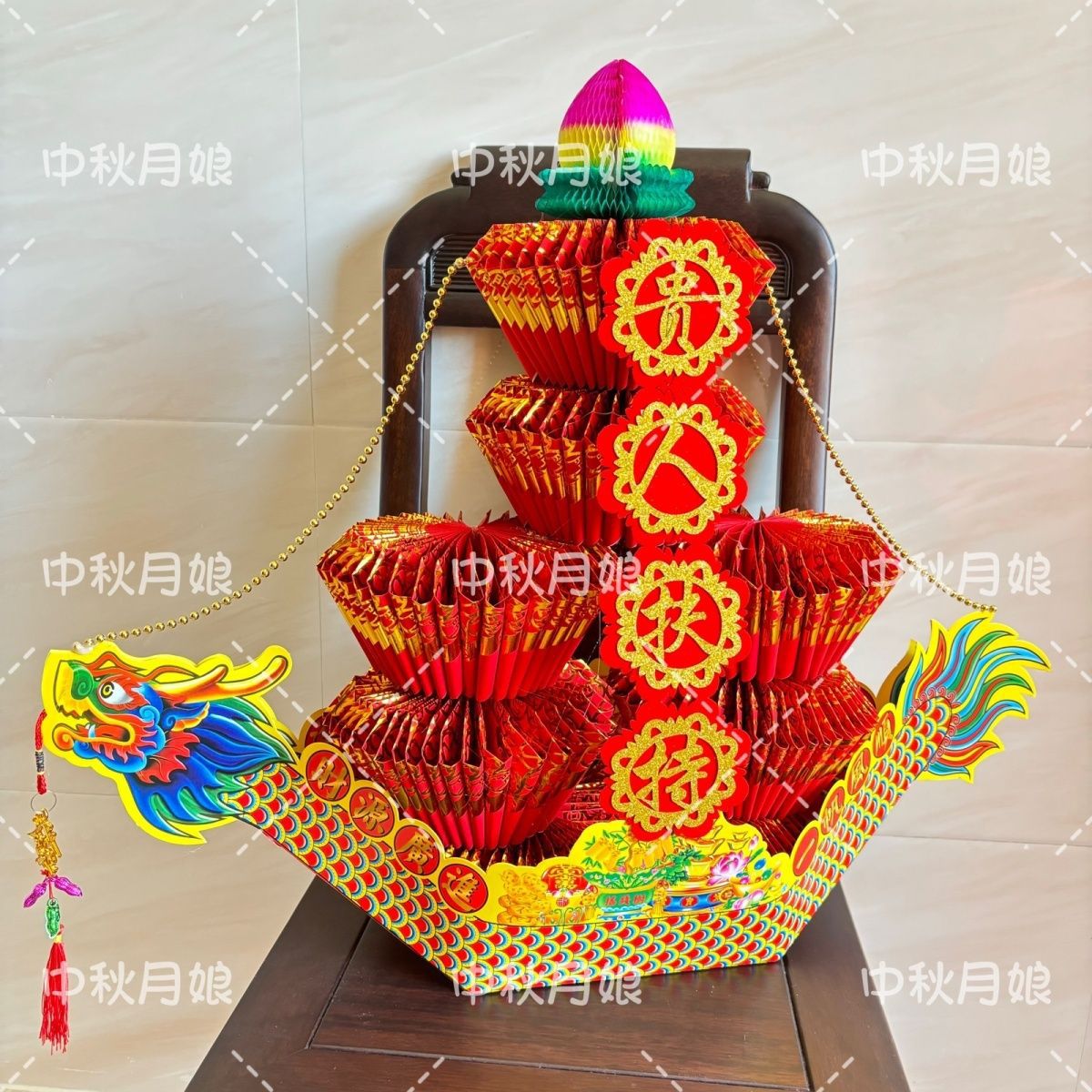 2025新款中秋潮汕折纸清心钱龙船塔中秋赏月塔 半成品 手工折