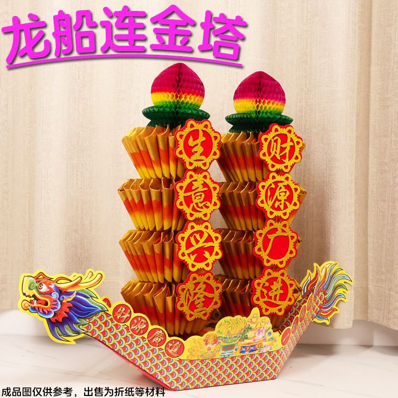 中秋折塔套装装饰品材料包 一帆风顺龙船 五彩折纸折叠招财聚宝盆
