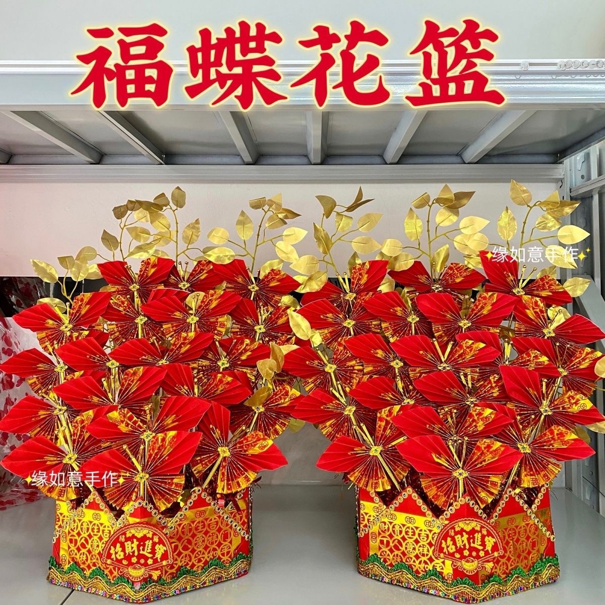 潮汕中秋折塔 新款福蝶花篮折纸材料包 拜月娘一对需自折送教程