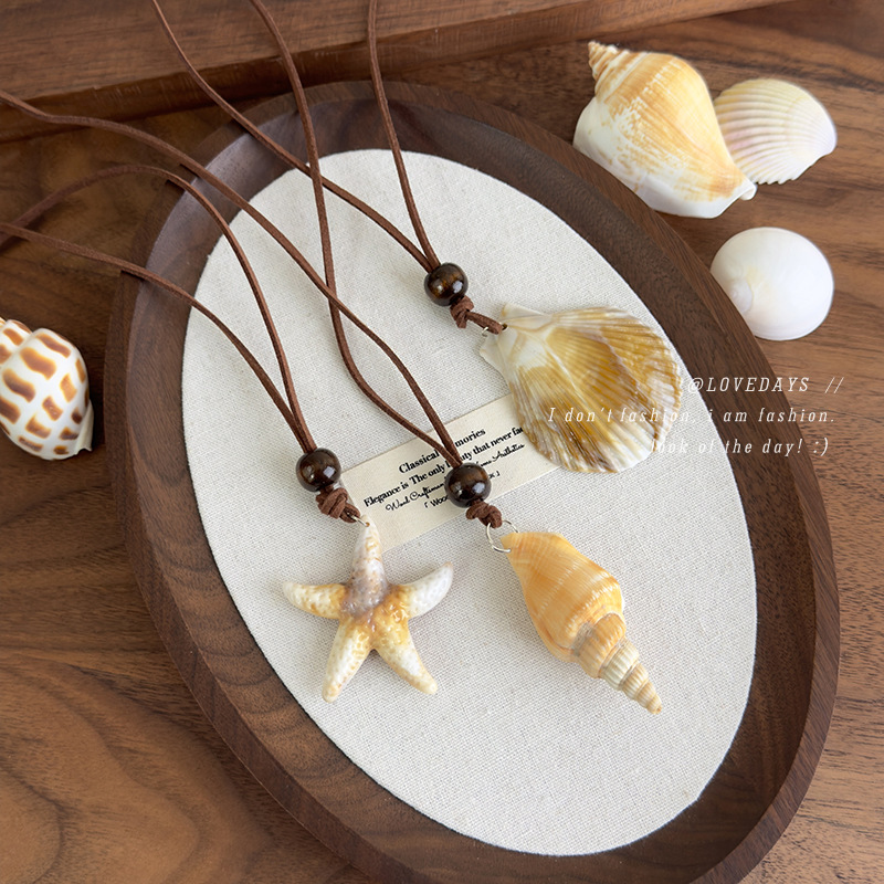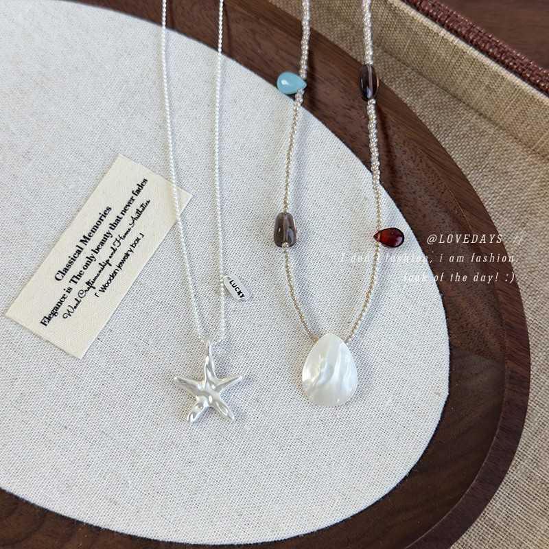 韓国式百合少女小清新貝殻天然石ビーズネックレス五角星海星重ね鎖鎖飾り