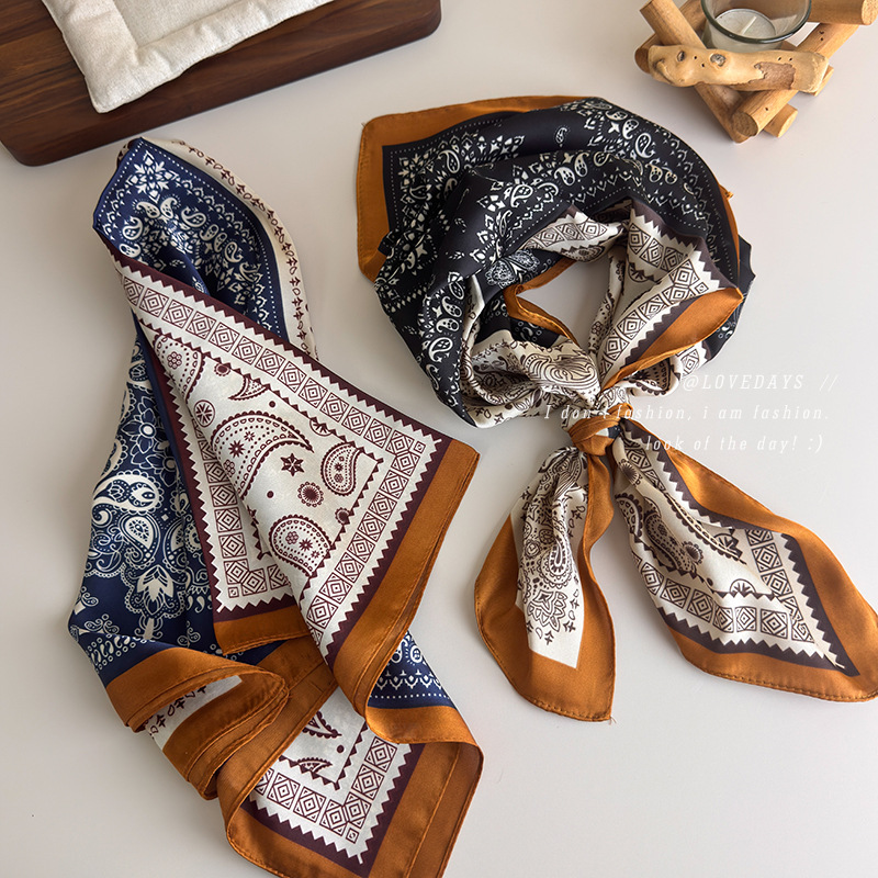 美式千禧辣妹风包头头巾女复古腰果花护颈领巾装饰多功能丝巾方巾