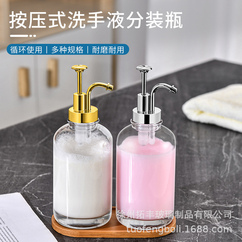亚马逊跨境按压式分装瓶透明玻璃空瓶浴室卫生间沐浴露化妆品瓶子