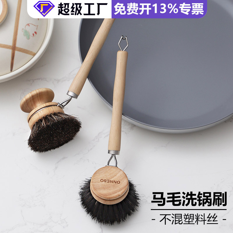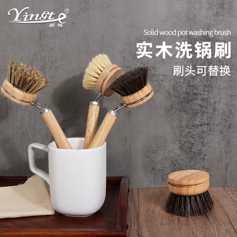 实木洗锅刷可替换可悬挂长柄锅刷马毛椰棕毛剑麻毛清洁刷厂家批发