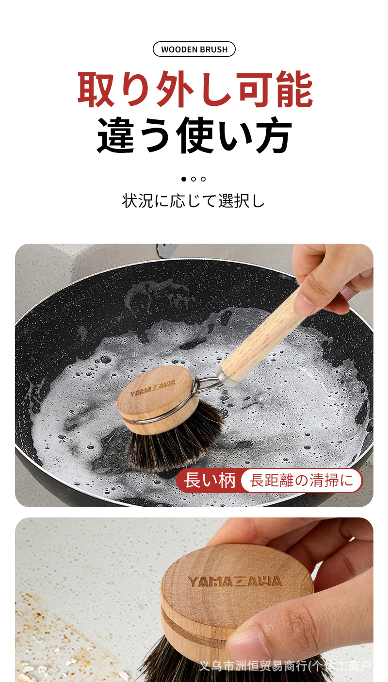 日本yamazawa长柄马毛锅刷家用可替换刷头软毛清洁刷实木柄洗锅刷