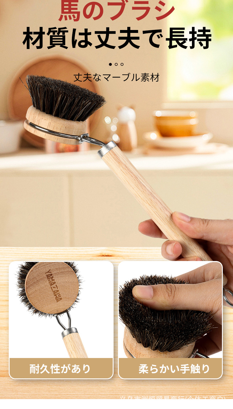 天然馬毛鍋ブラシ軟毛洗浄鍋環境保護剣麻ココナツブラウン植物毛洗浄鍋木ブラシは頭を変えることができる