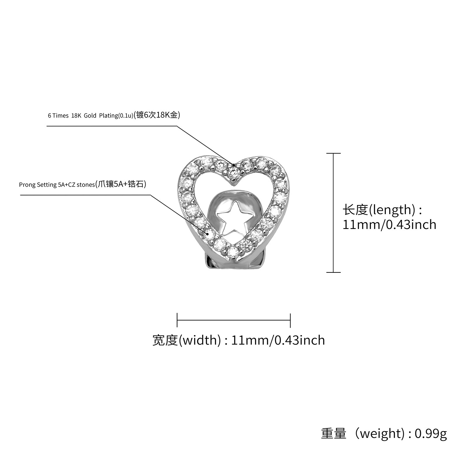 亚马逊跨境新款爱心锆石镂空单颗牙套欧美temu个性百搭牙套饰品